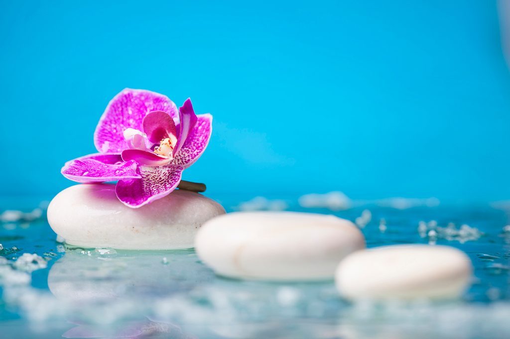 Samolepící fototapeta spa zátiší s fialovou orchidejí