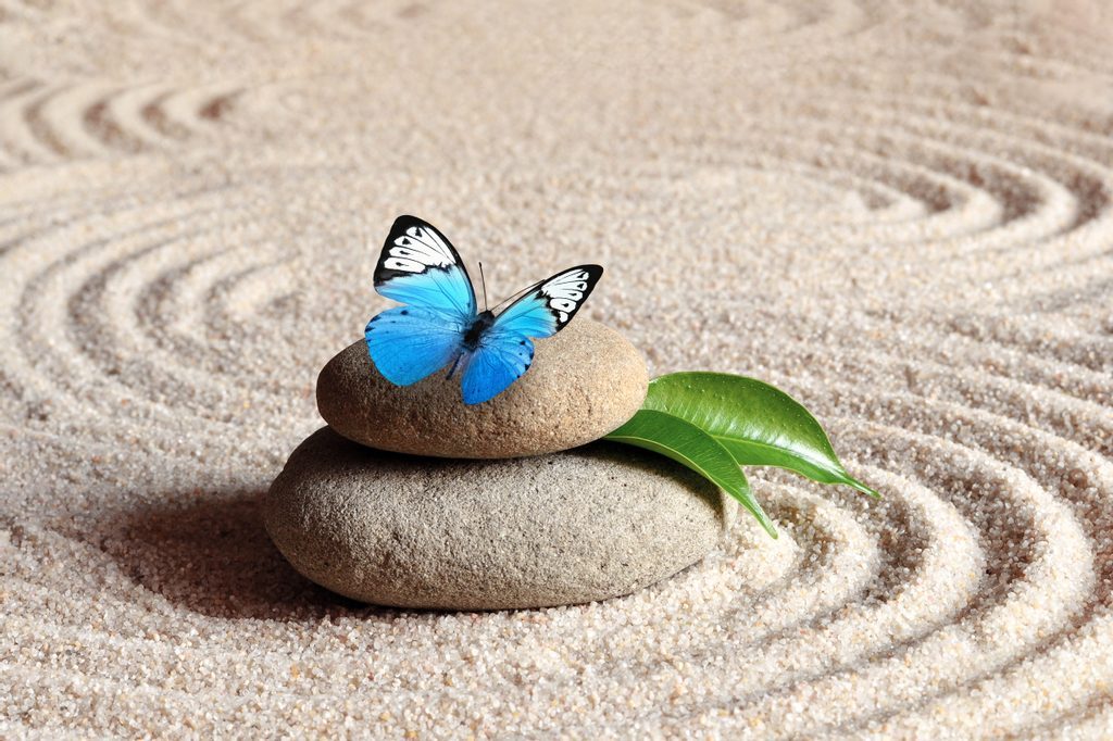 Fototapeta soulad motýla s kameny na abstraktním pozadí