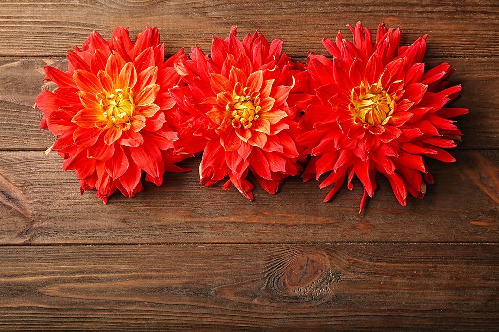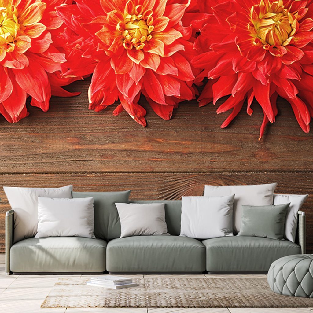 Fototapeta květiny dálí na dřevěném pozadí