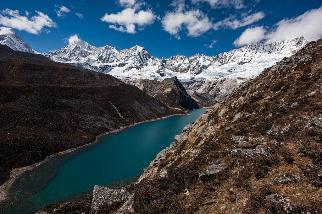 Originální fototapeta černobílé jezero uprostřed hor