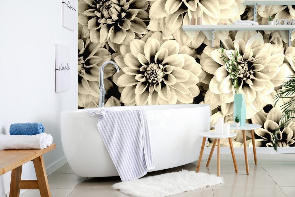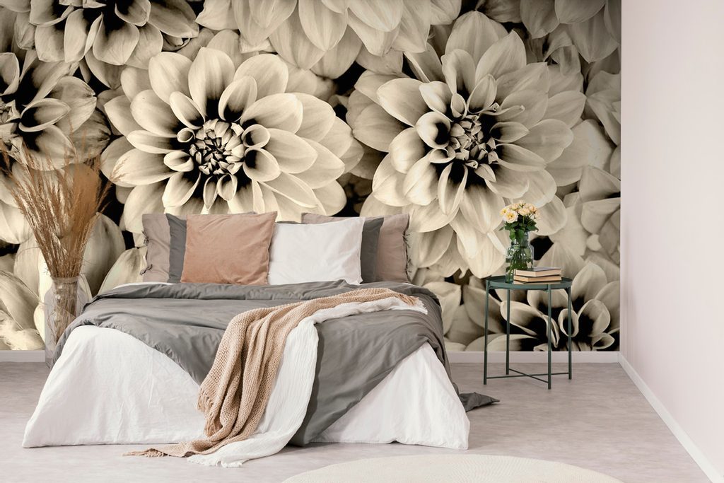 Samolepící tapeta malovaná kytice v černobílém provedení