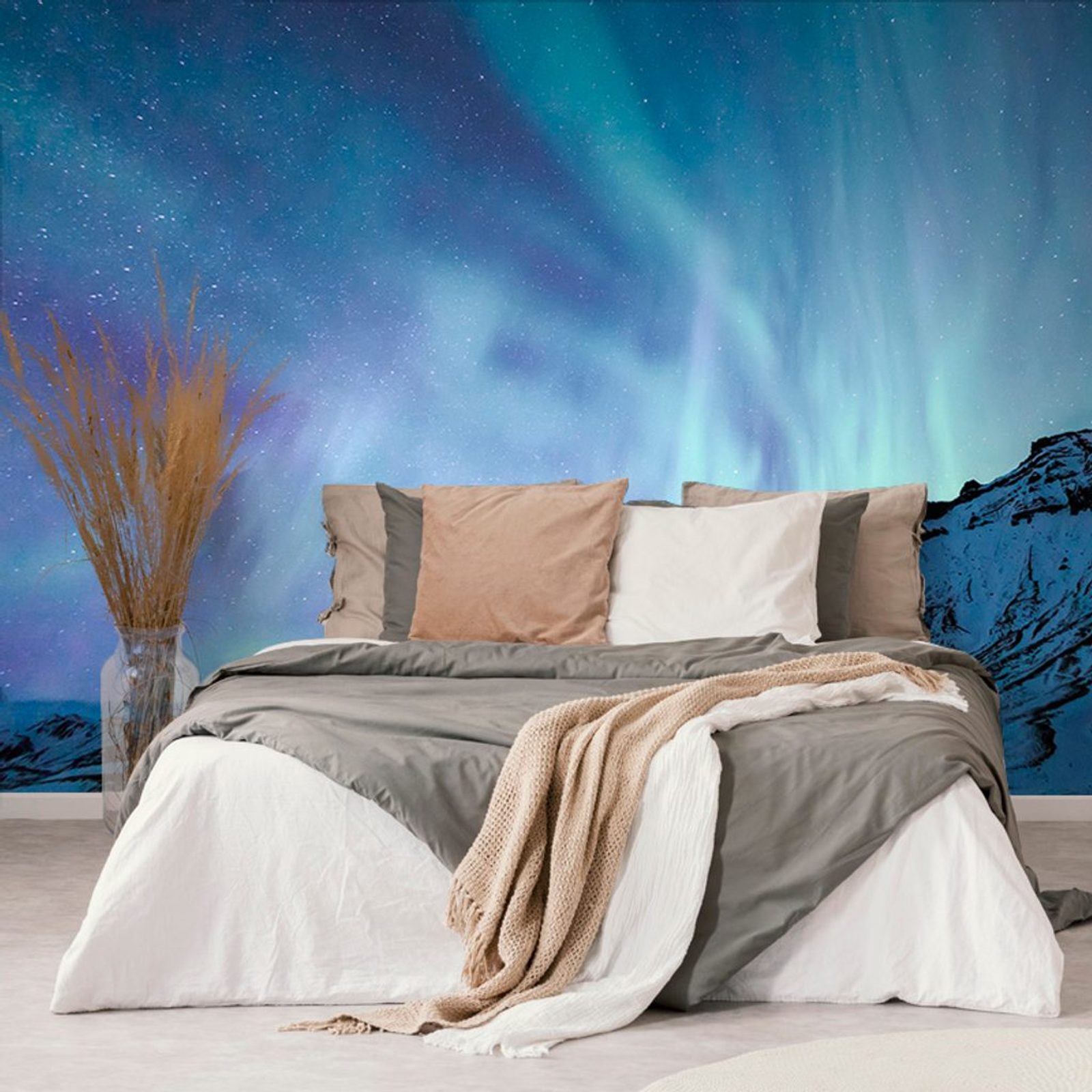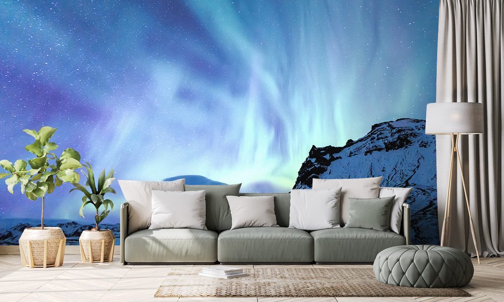 Fototapeta polární záře nad horami