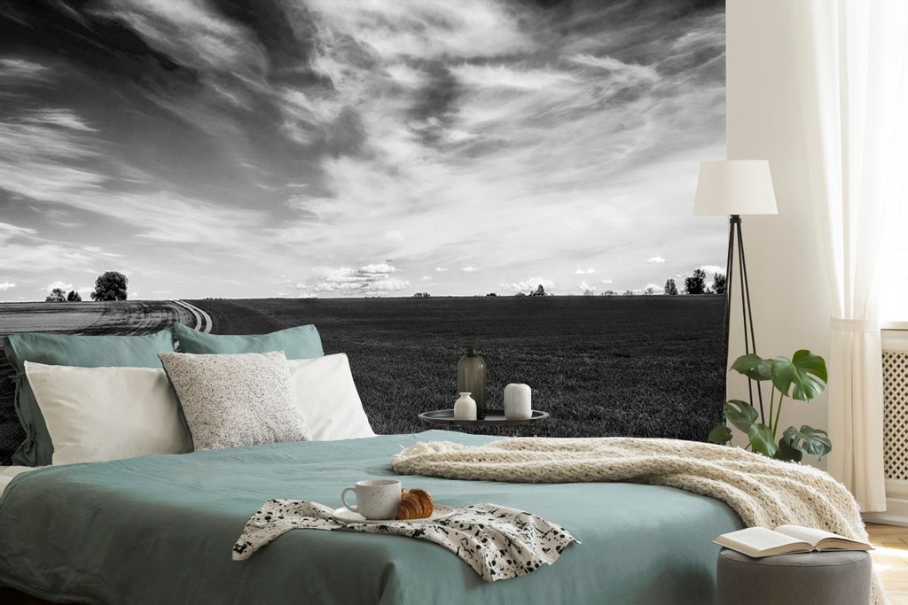 Fototapeta těsta jarní krajinou v černobílém provedení
