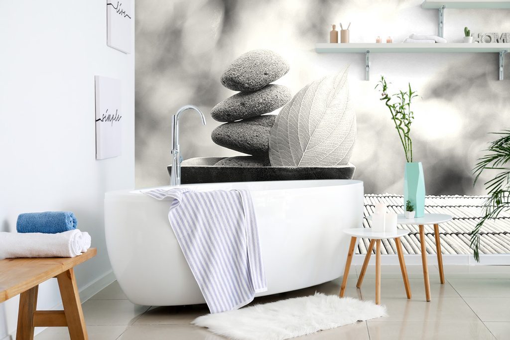 Jedinečná černobílá fototapeta miska se zen kameny