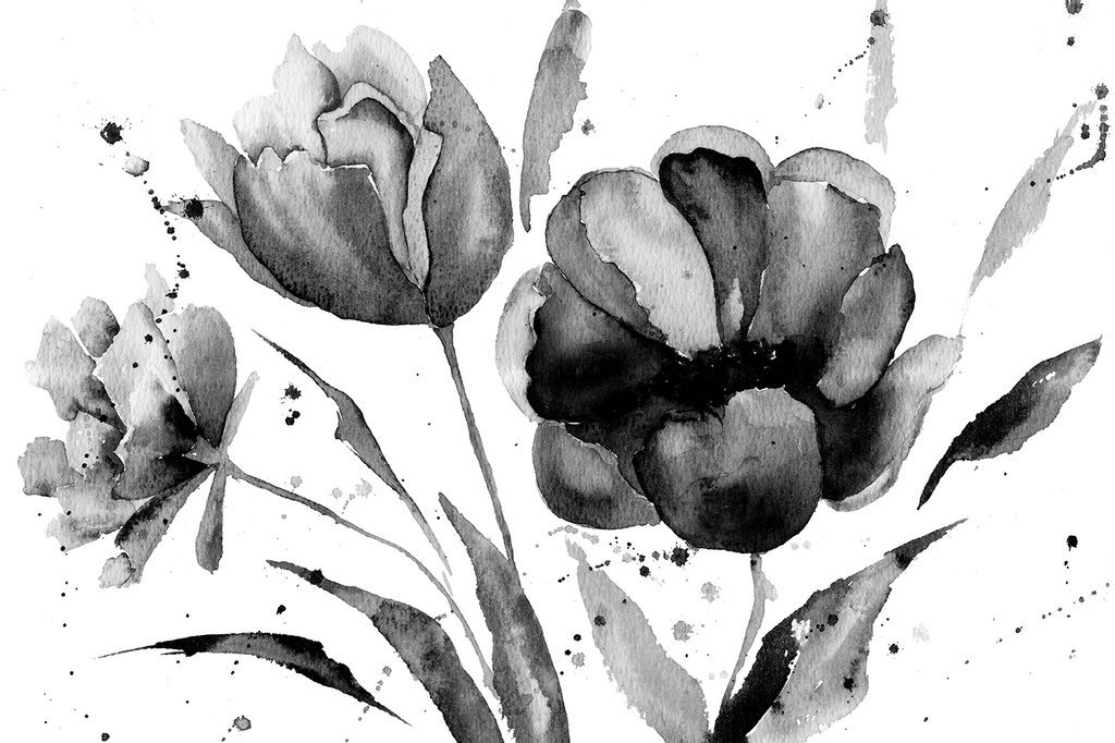 Jedinečná černobílá samolepící tapeta malované tulipány