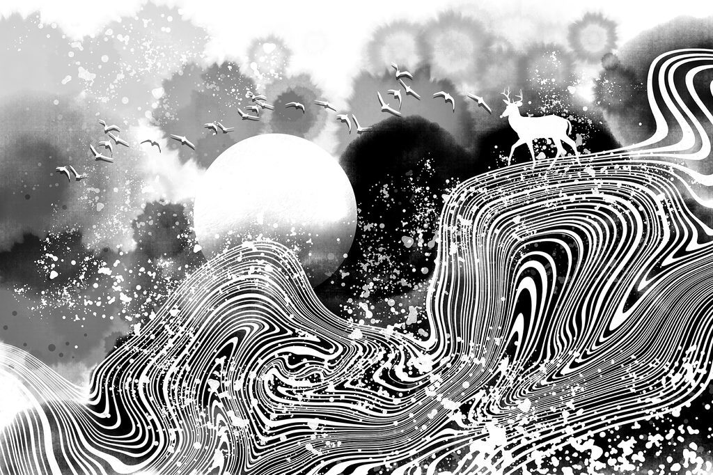 Samolepící fototapeta těsta jarní krajinou v černobílém provedení