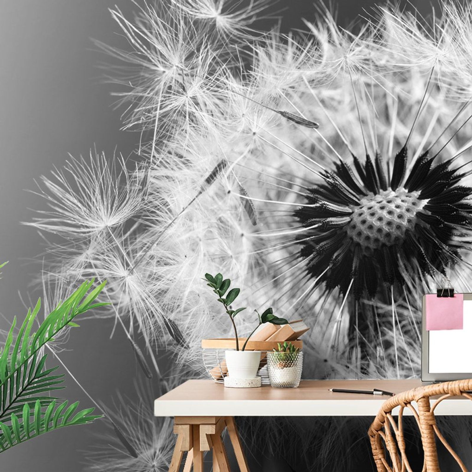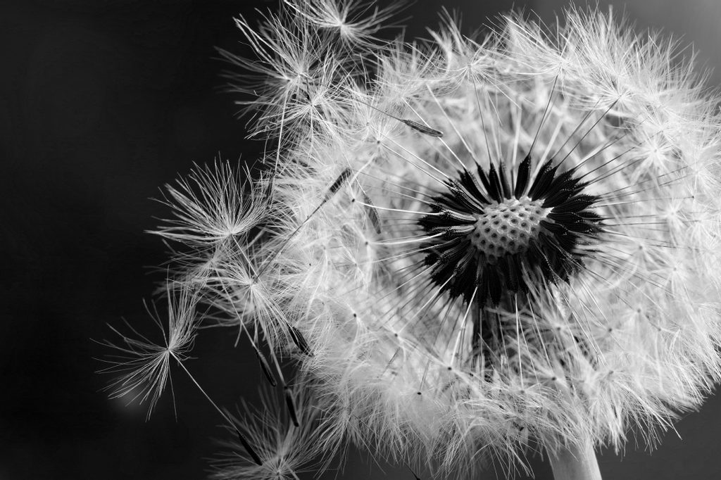 Jedinečná fototapeta detailní pampeliška v černobílém provedení