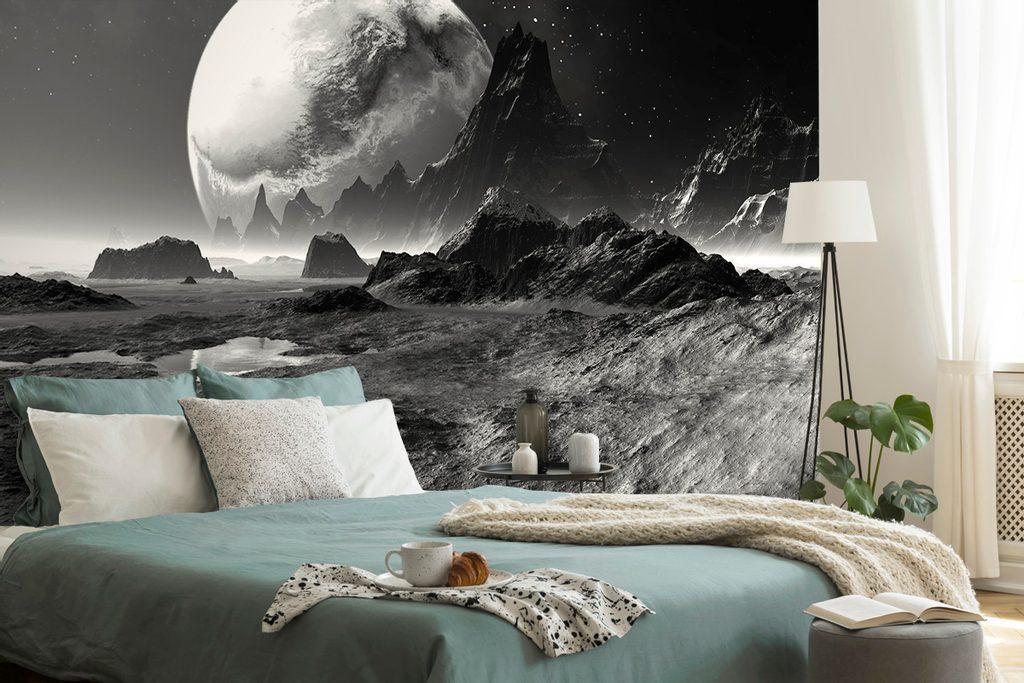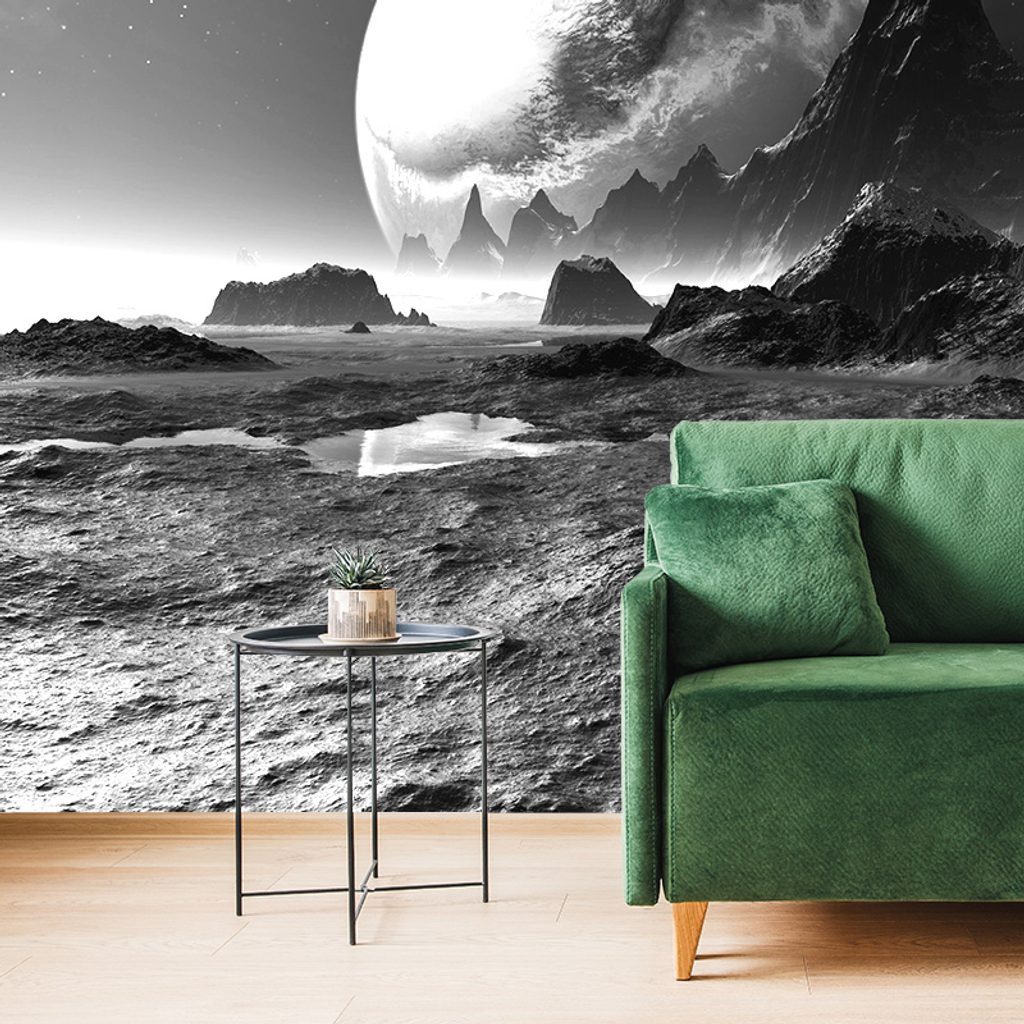 Jedinečná samolepící tapeta černobílá fantasy planeta