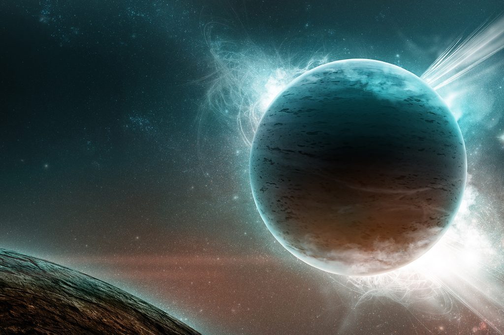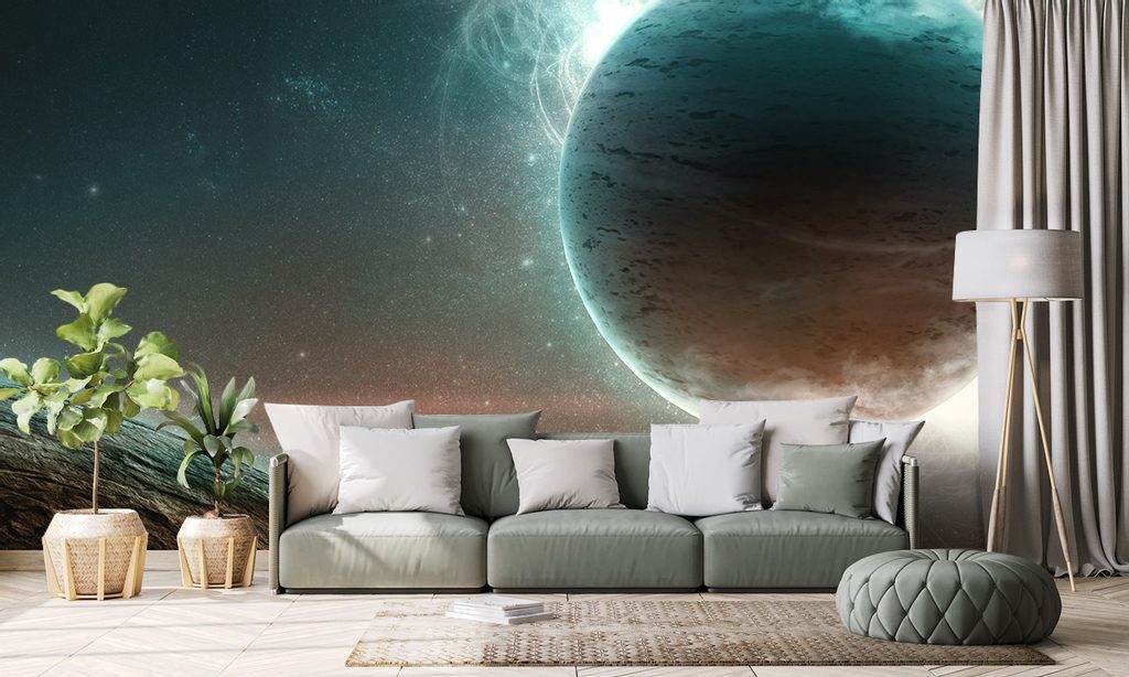 Jedinečná samolepící tapeta černobílá fantasy planeta