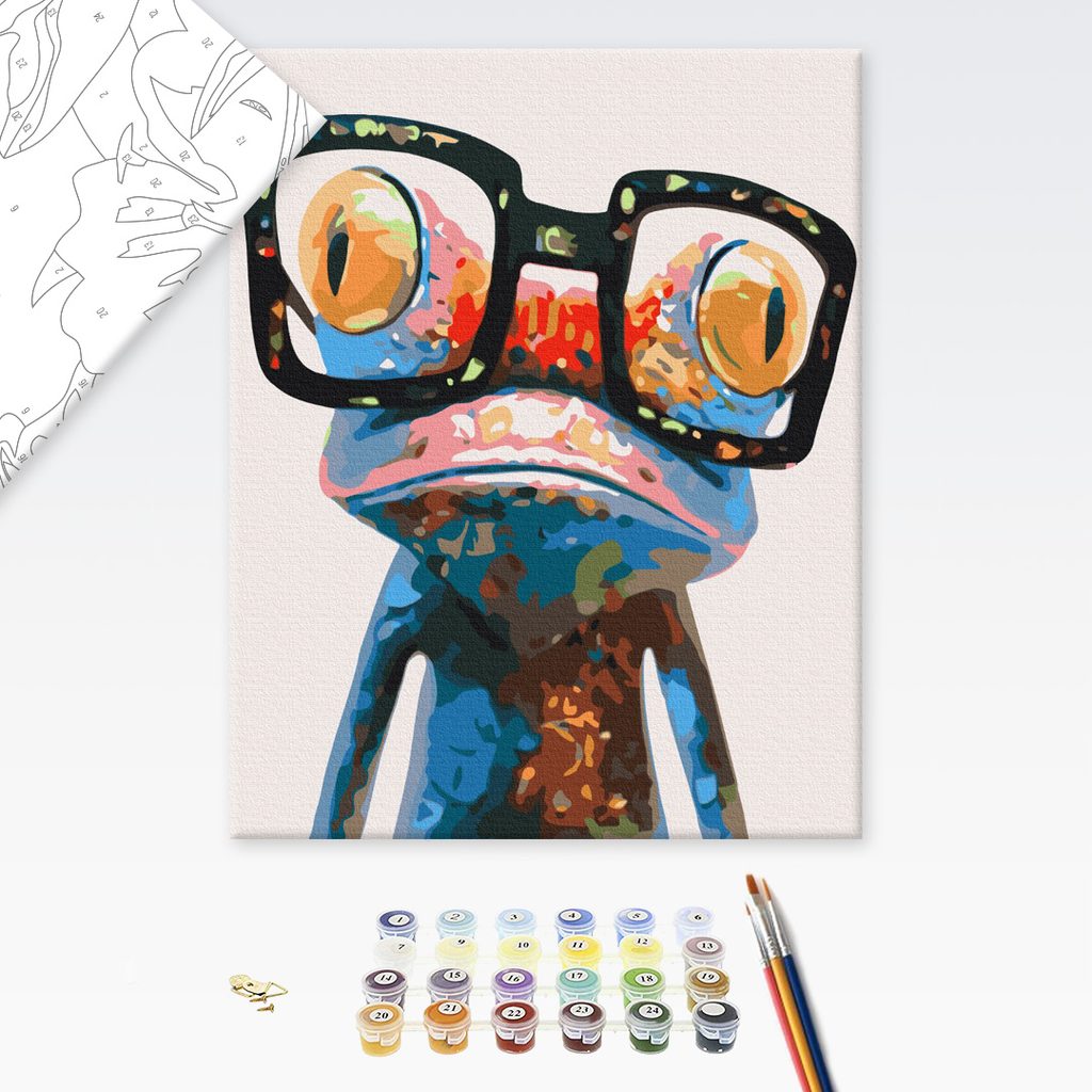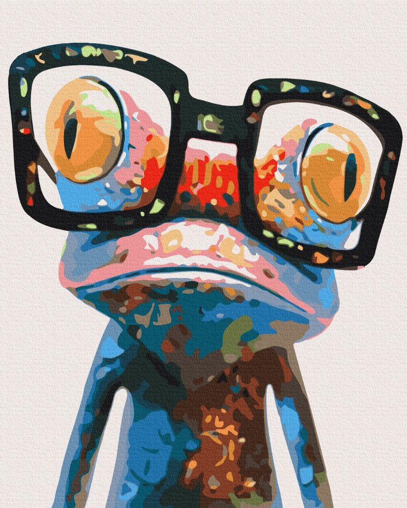 Malování podle čísel žába s velkými brýlemi