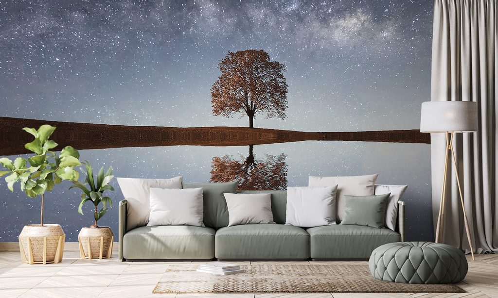Nádherná samolepící fototapeta strom pod oblohou plnou hvězd
