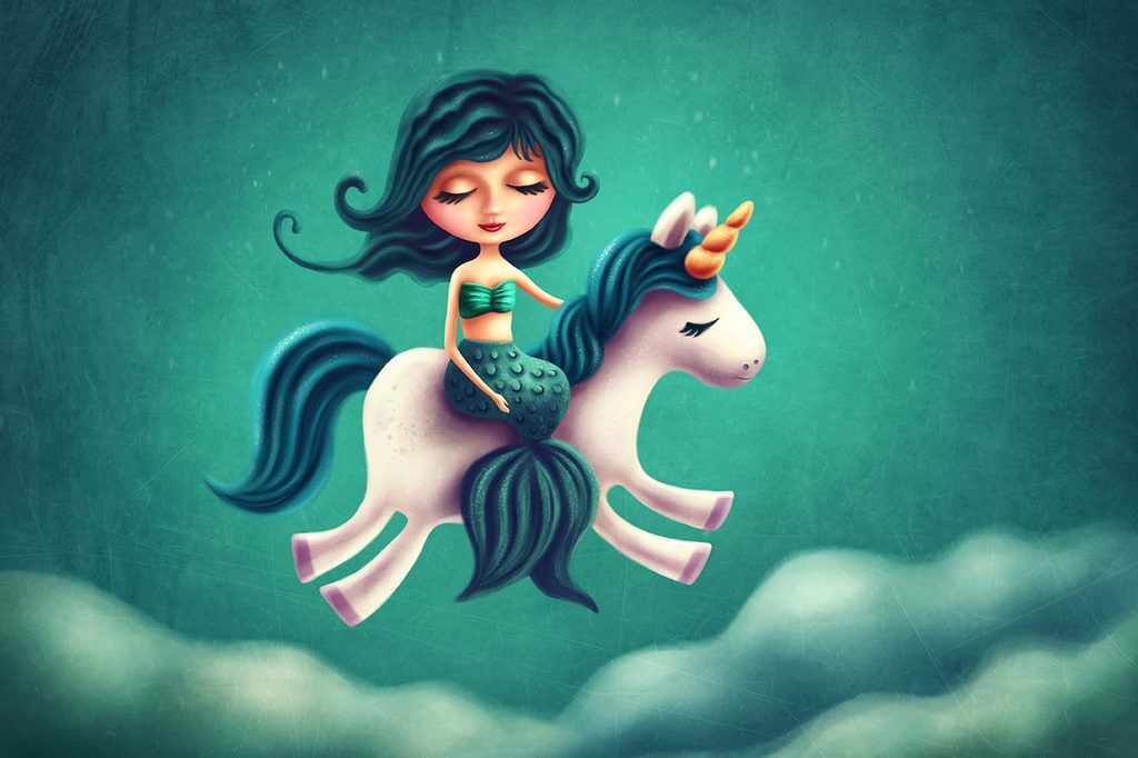 Nádherná samolepící tapeta mořská víla na jednorožci