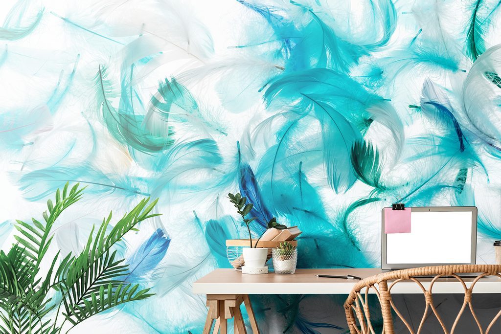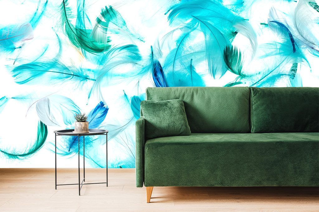 Nádherná samolepící tapeta peříčka zbarvená do zelena
