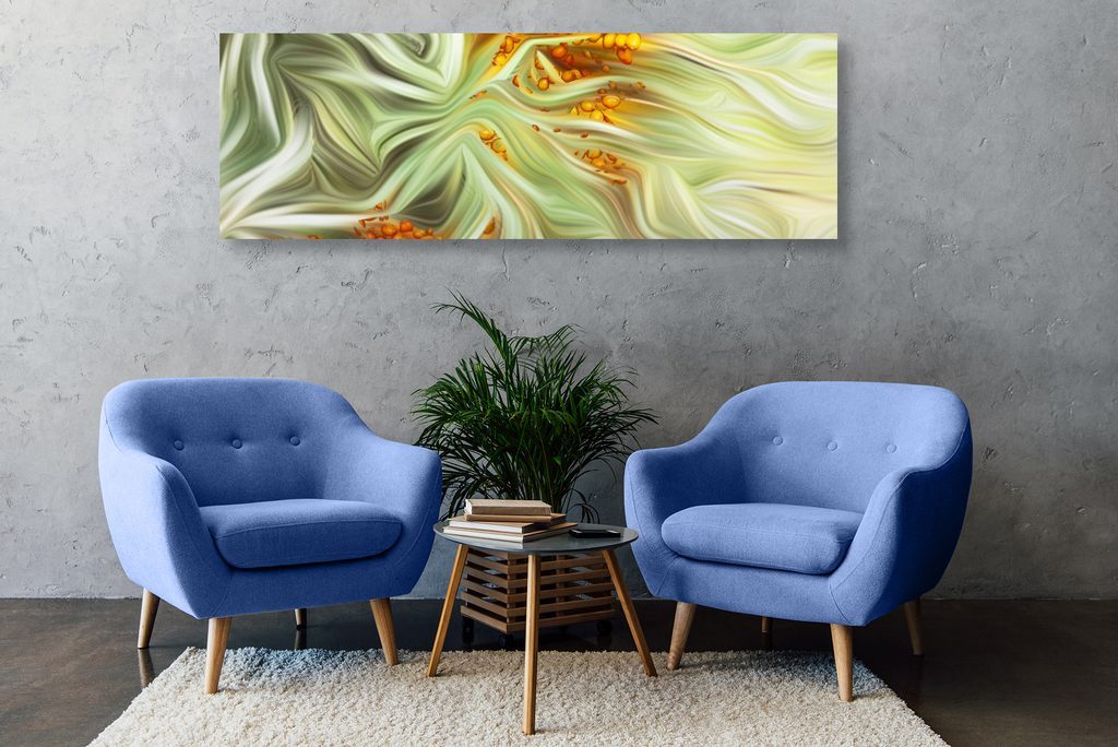 Obraz abstrakce v zeleno-oranžových barvách