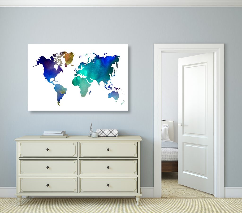 Obraz na korku jednoduchá mapa světa v šedém provedení