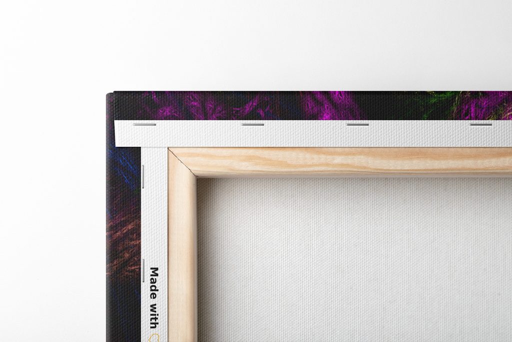 Jelikož chceme, aby obraz na vaší stěně vypadal dokonale, zaměřujeme se na detaily. Proto je plátno důkladně napnuto na rám, který je z kvalitního dřeva. Použitý rám je vyráběn z rámarských lišt, které jsou vhodné pro výrobu obrazů. Nesmíme zapomenout ani na to, že na zadní straně jsou nahustě umístěny spony. Spolu s obrazy obdržíte 1 až 2 ks závěsů, které jsou umístěny na zadní straně, podle toho, jaký rozměr obrazu zvolíte. Pro obrazy, jejichž šířka je nad 120 cm je pro zesílení rámu vsazena dřevěná příčka.