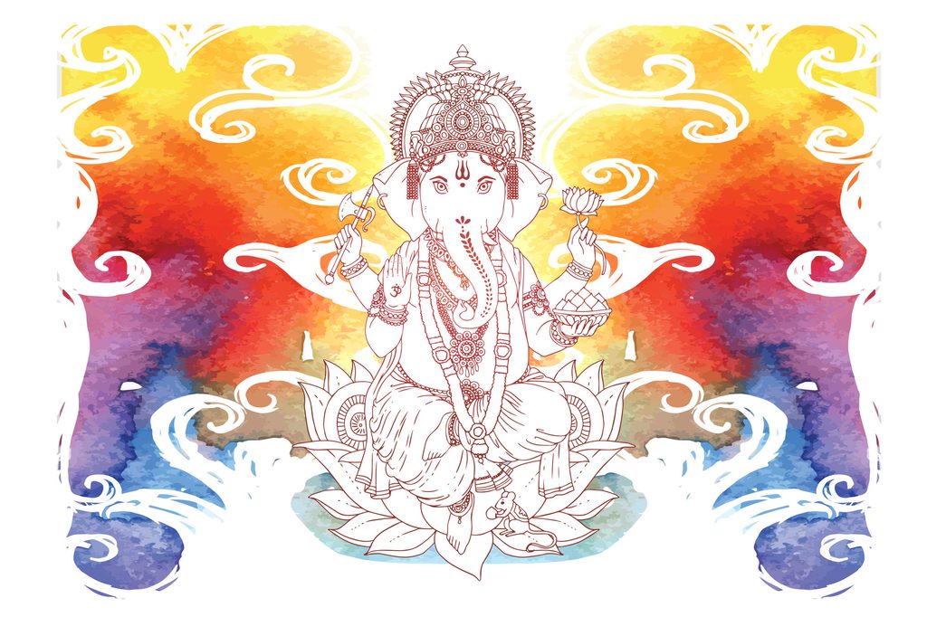 Obraz buddhistický Ganéš v barevném provedení