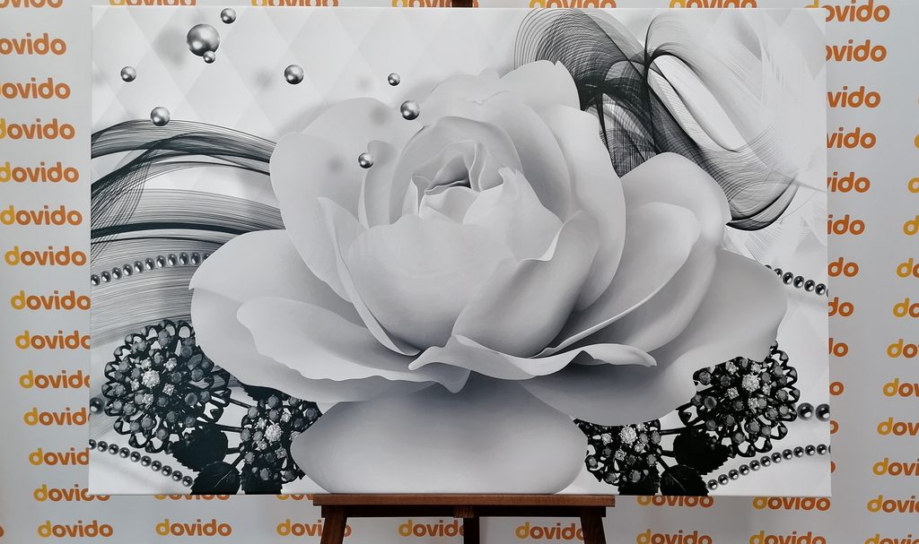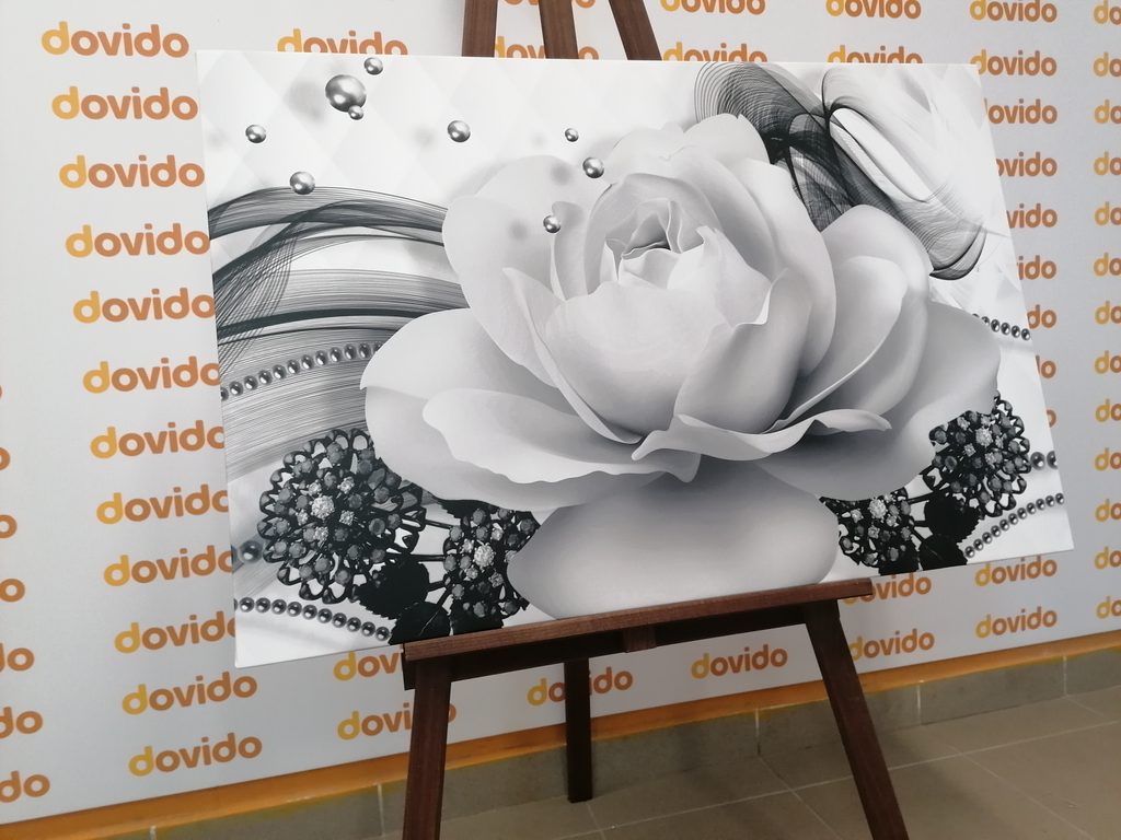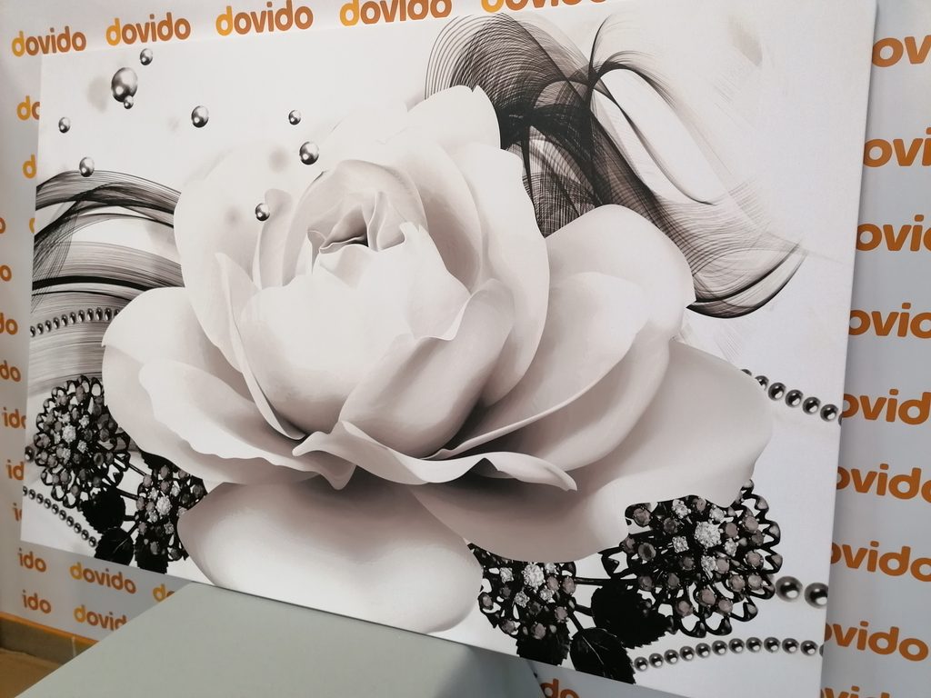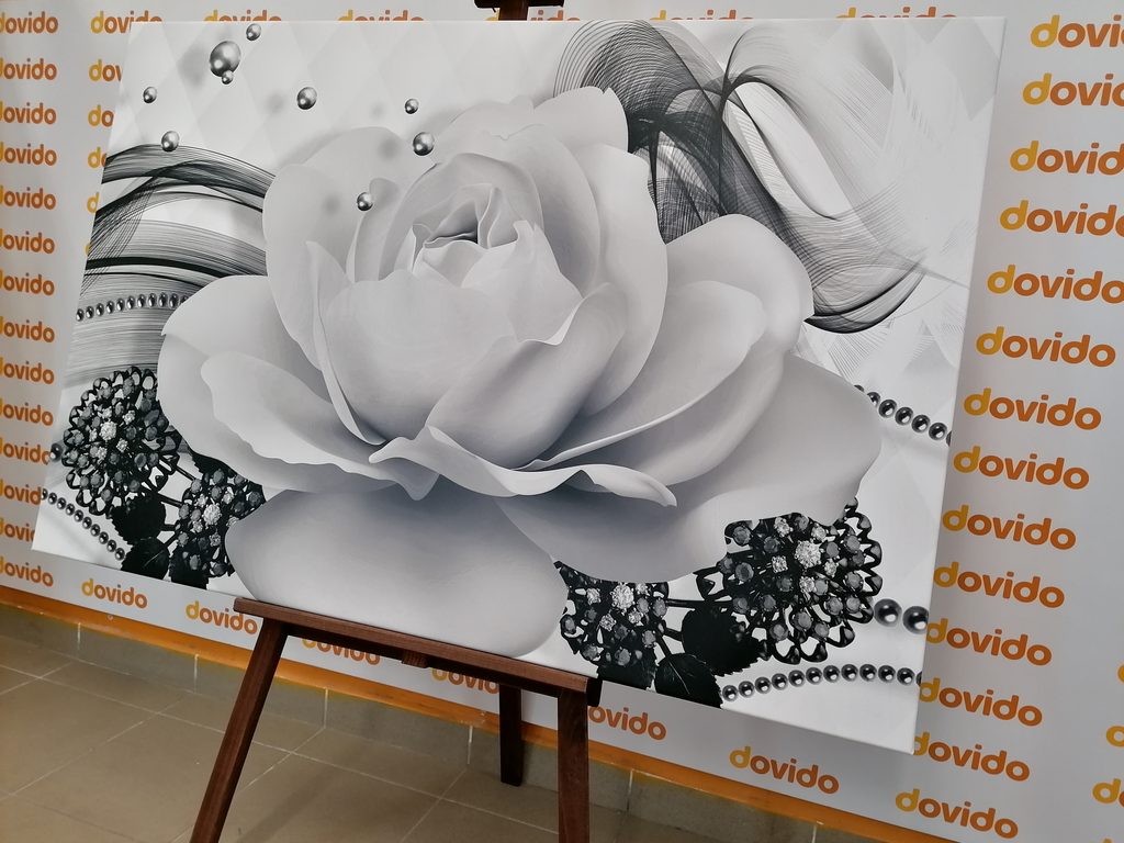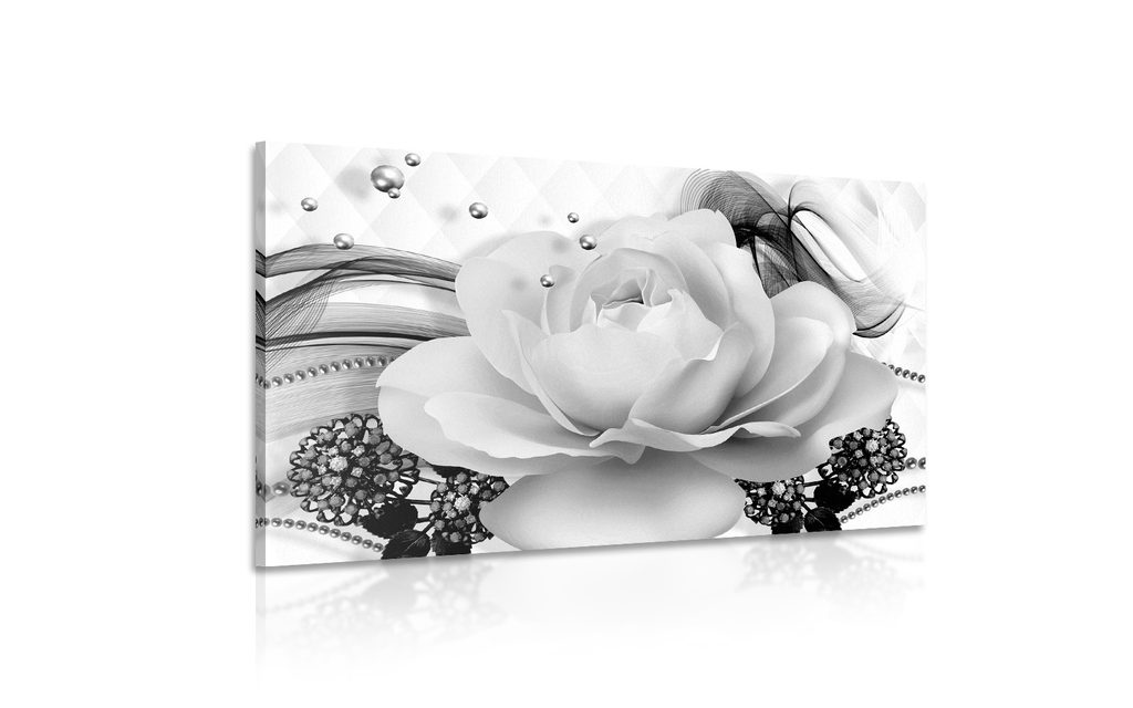 Obraz černobílá růže v elegantním provedení