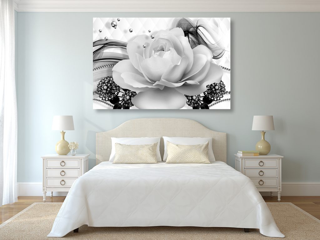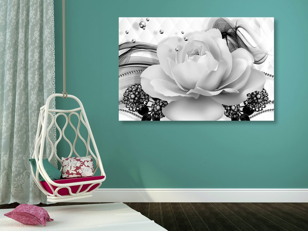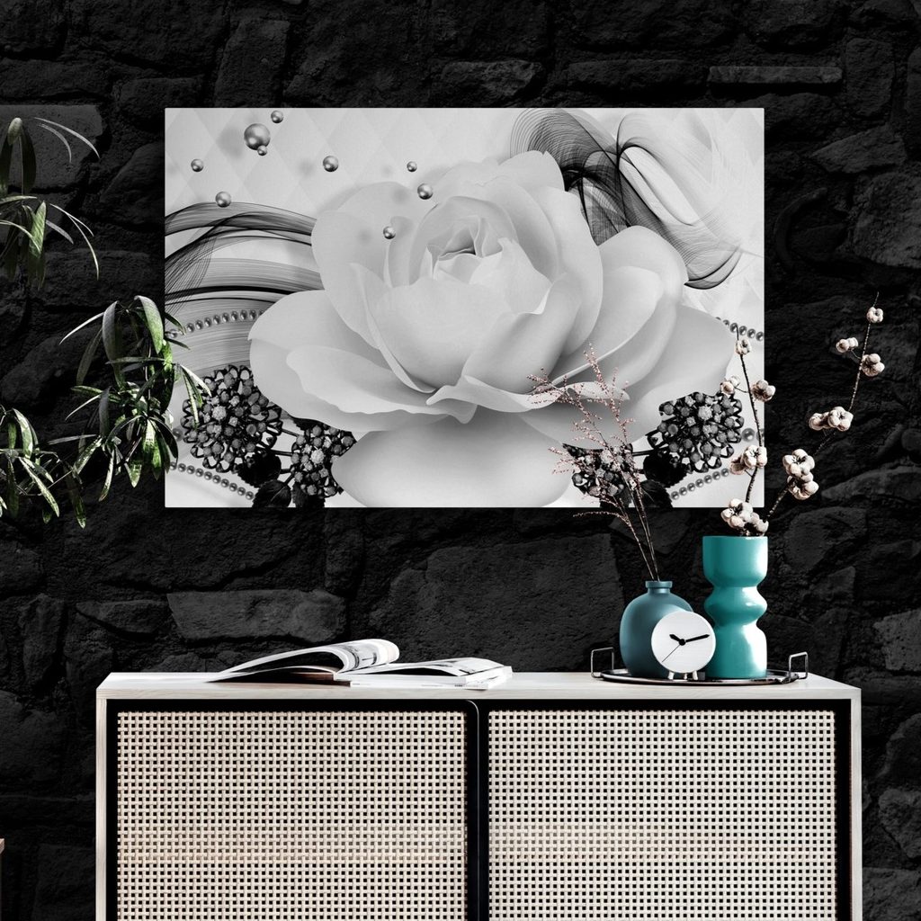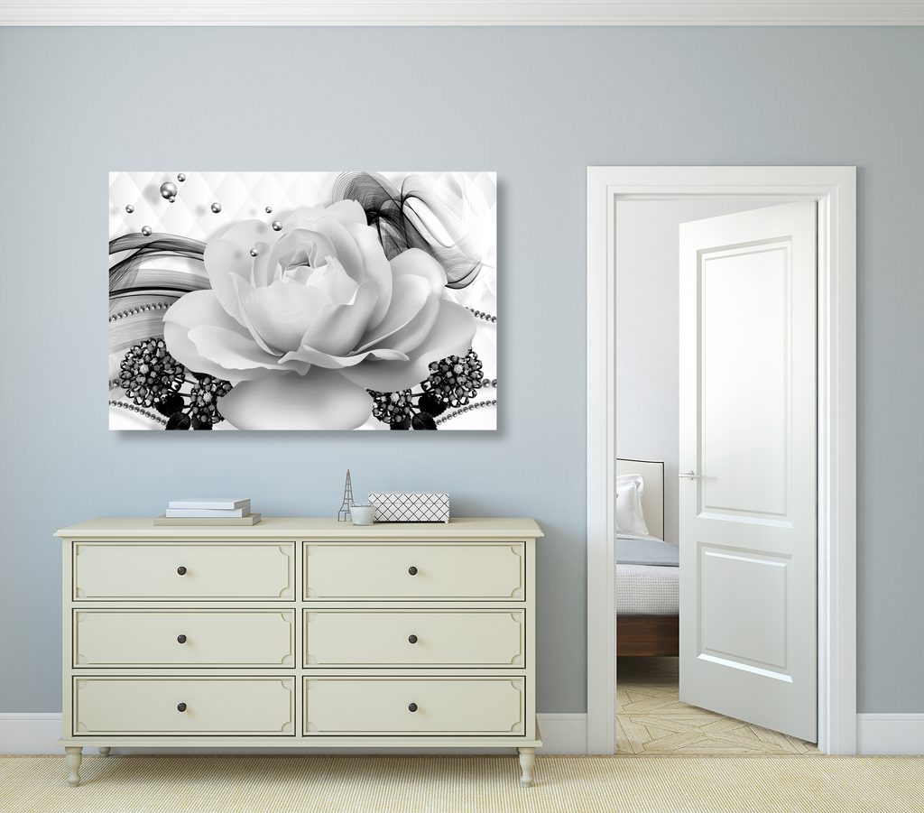 Obraz černobílá růže v elegantním provedení
