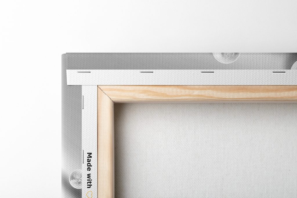 Jelikož chceme, aby obraz na vaší stěně vypadal dokonale, zaměřujeme se na detaily. Proto je plátno důkladně napnuto na rám, který je z kvalitního dřeva. Použitý rám je vyráběn z rámarských lišt, které jsou vhodné pro výrobu obrazů. Nesmíme zapomenout ani na to, že na zadní straně jsou nahustě umístěny spony. Spolu s obrazy obdržíte 1 až 2 ks závěsů, které jsou umístěny na zadní straně, podle toho, jaký rozměr obrazu zvolíte. Pro obrazy, jejichž šířka je nad 120 cm je pro zesílení rámu vsazena dřevěná příčka.