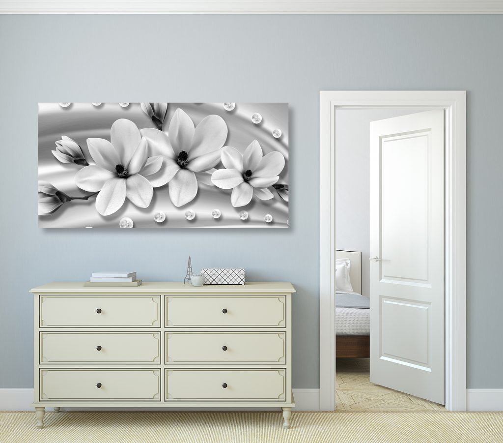 Obraz černobílé luxusní květiny na bronzovém pozadí