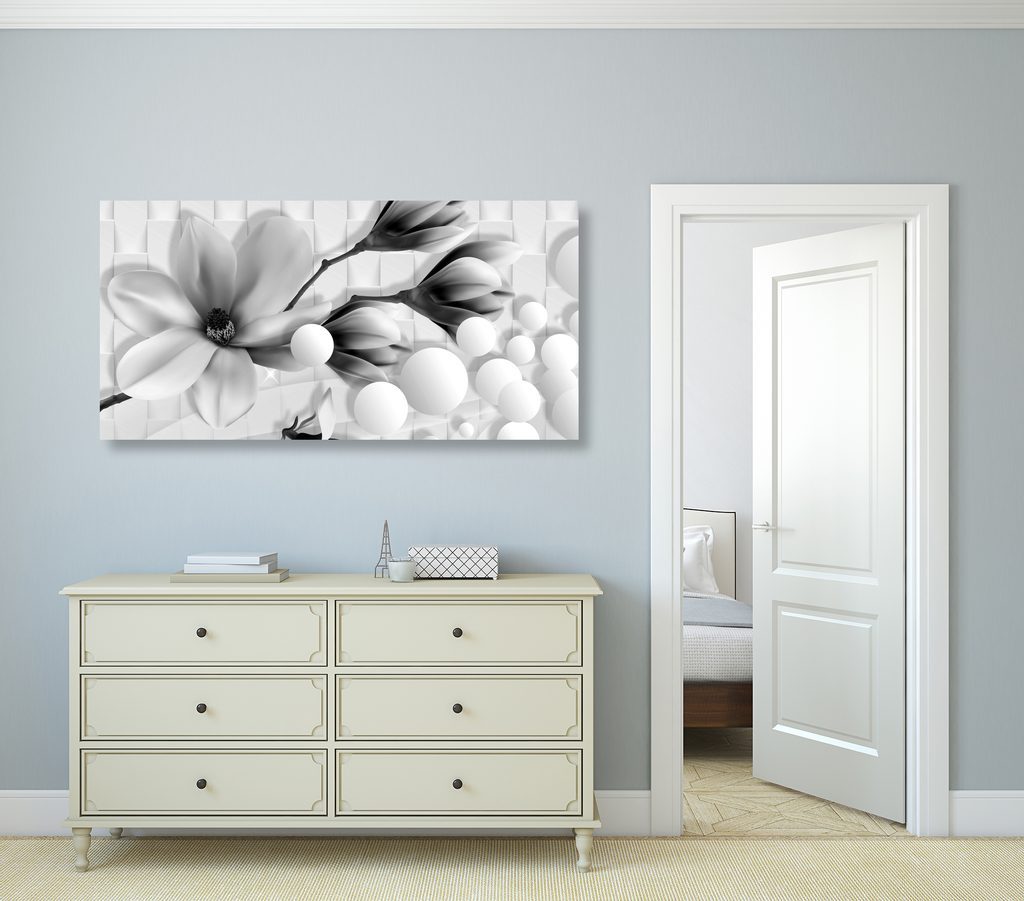 Obraz nádherné květiny v černobílém provedení