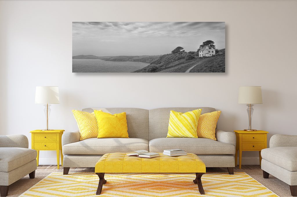 Obraz dům u moře v černobílém provedení