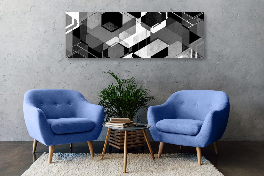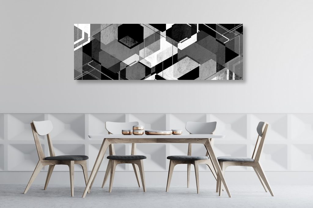 Obraz futuristická abstrakce tvarů v černobílém provedení