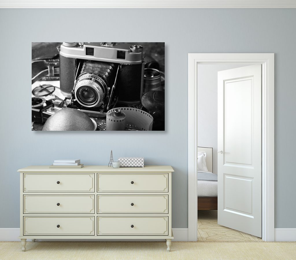 Obraz historický fotoaparát v černobílém provedení