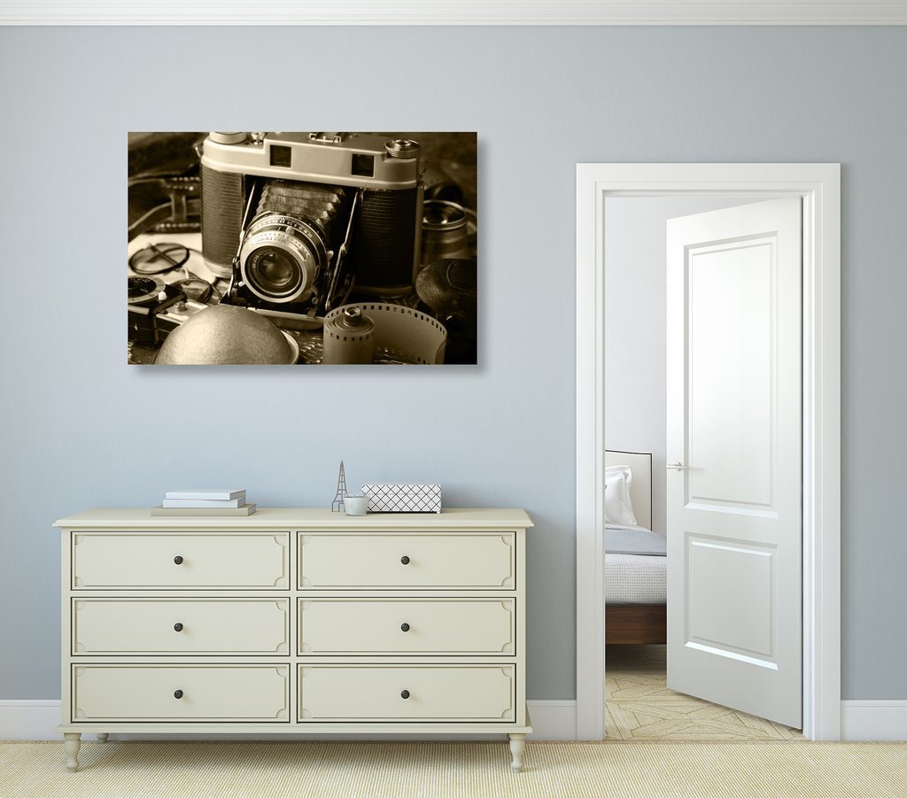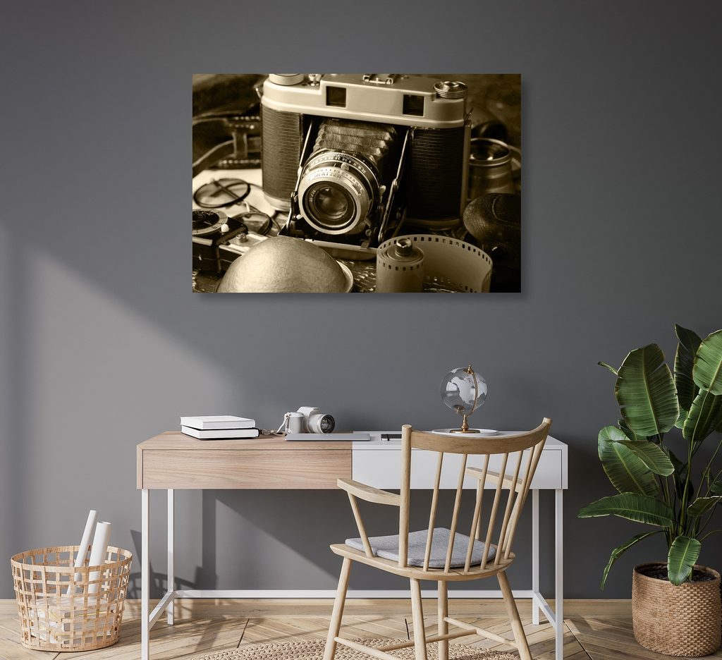 Obraz historický fotoaparát v sépiovém provedení