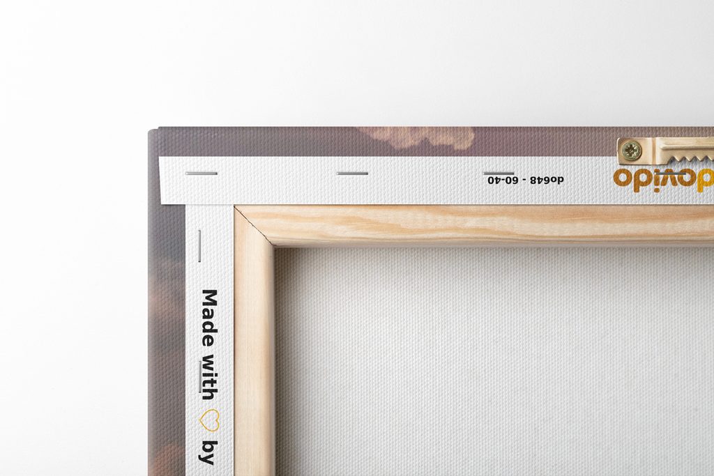 Jelikož chceme, aby obraz na vaší stěně vypadal dokonale, zaměřujeme se na detaily. Proto je plátno důkladně napnuto na rám, který je z kvalitního dřeva. Použitý rám je vyráběn z rámarských lišt, které jsou vhodné pro výrobu obrazů. Nesmíme zapomenout ani na to, že na zadní straně jsou nahustě umístěny spony. Spolu s obrazy obdržíte 1 až 2 ks závěsů, které jsou umístěny na zadní straně, podle toho, jaký rozměr obrazu zvolíte. Pro obrazy, jejichž šířka je nad 120 cm je pro zesílení rámu vsazena dřevěná příčka.