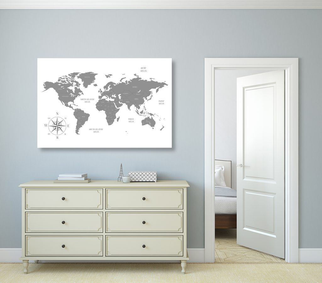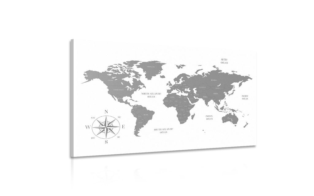 Obraz mapa světa v černobílém provedení