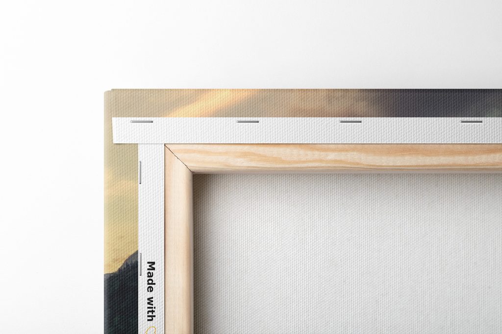 Jelikož chceme, aby obraz na vaší stěně vypadal dokonale, zaměřujeme se na detaily. Proto je plátno důkladně napnuto na rám, který je z kvalitního dřeva. Použitý rám je vyráběn z rámarských lišt, které jsou vhodné pro výrobu obrazů. Nesmíme zapomenout ani na to, že na zadní straně jsou nahustě umístěny spony. Spolu s obrazy obdržíte 1 až 2 ks závěsů, které jsou umístěny na zadní straně, podle toho, jaký rozměr obrazu zvolíte. Pro obrazy, jejichž šířka je nad 120 cm je pro zesílení rámu vsazena dřevěná příčka.