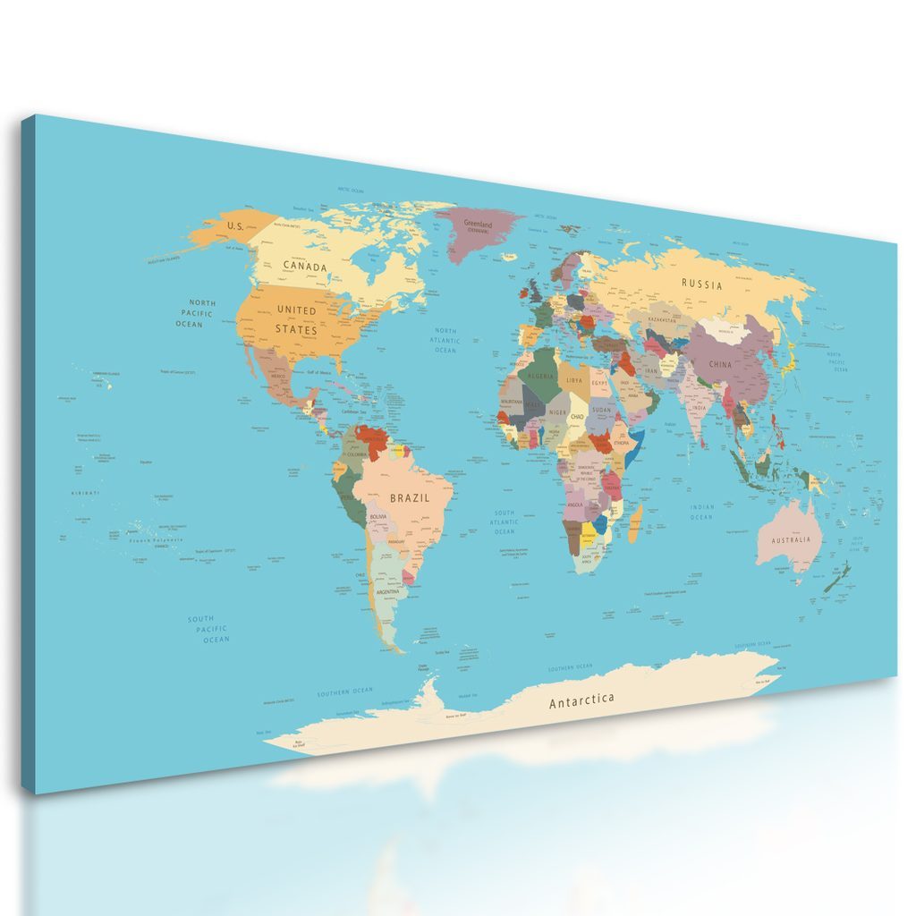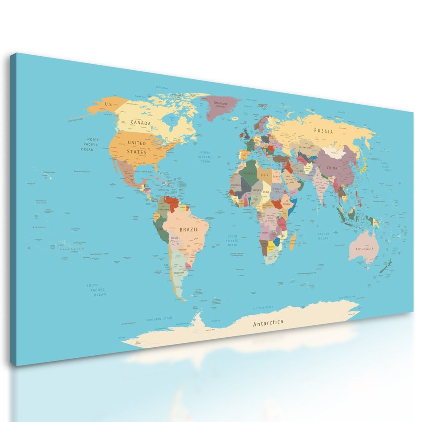 Obraz na korku mapa světa na dřevě v luxusním provedení