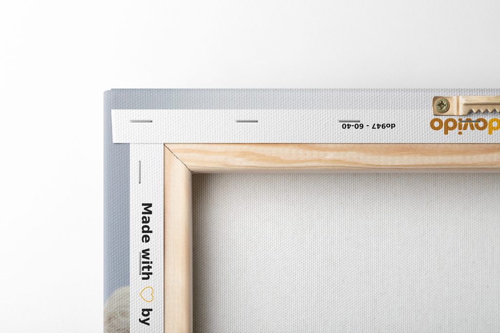 Jelikož chceme, aby obraz na vaší stěně vypadal dokonale, zaměřujeme se na detaily. Proto je plátno důkladně napnuto na rám, který je z kvalitního dřeva. Použitý rám je vyráběn z rámarských lišt, které jsou vhodné pro výrobu obrazů. Nesmíme zapomenout ani na to, že na zadní straně jsou nahustě umístěny spony. Spolu s obrazy obdržíte 1 až 2 ks závěsů, které jsou umístěny na zadní straně, podle toho, jaký rozměr obrazu zvolíte. Pro obrazy, jejichž šířka je nad 120 cm je pro zesílení rámu vsazena dřevěná příčka.