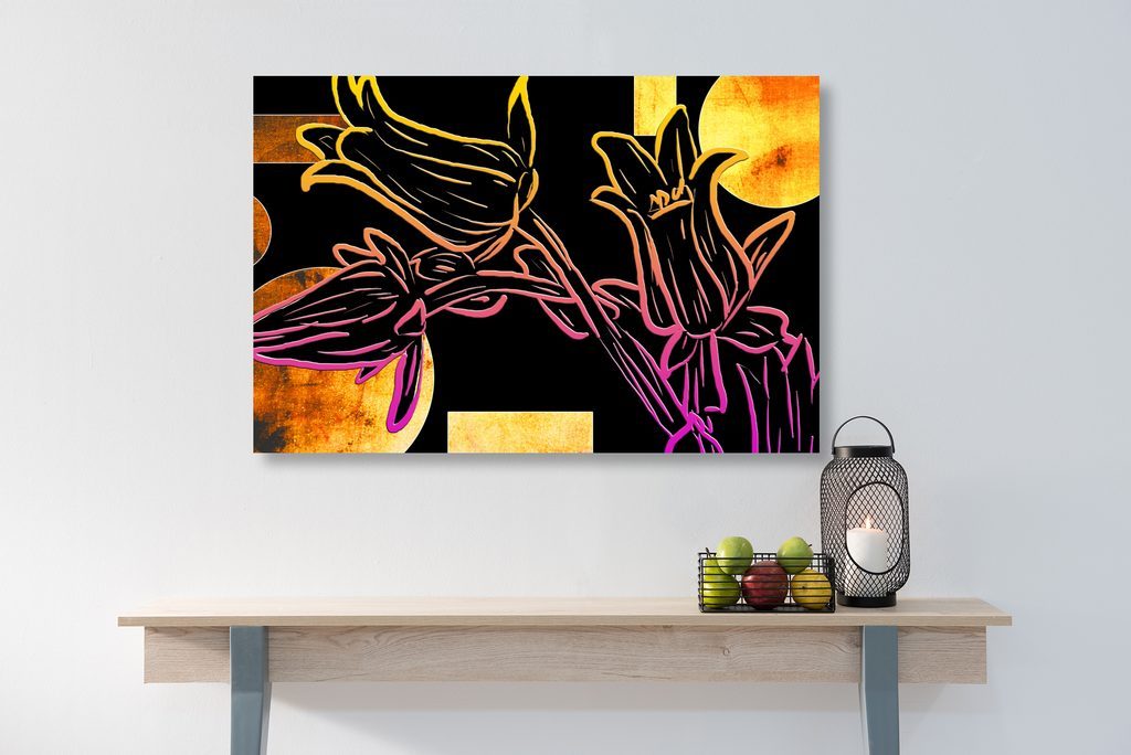 Obraz květiny v abstraktním neonovém provedení