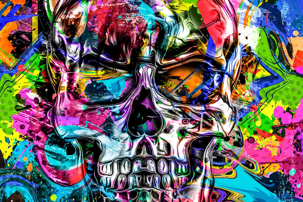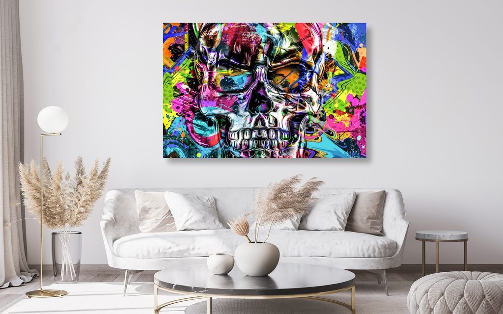 Obraz lebka v pop art provedení