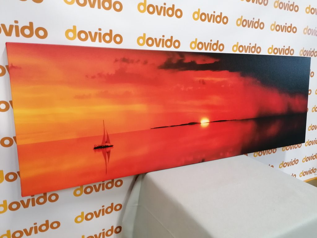 Obraz západ slunce nad malebnou krajinkou v černobílém provedení