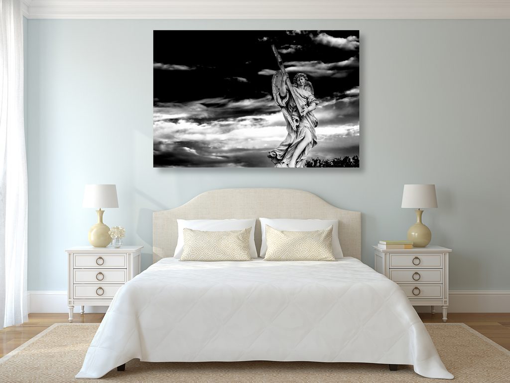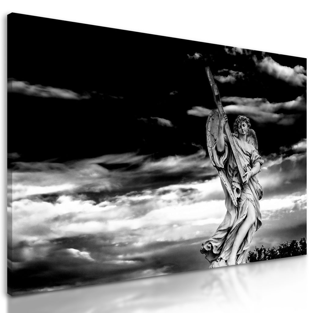 Obraz majestátní anděl na obloze v černobílém provedení