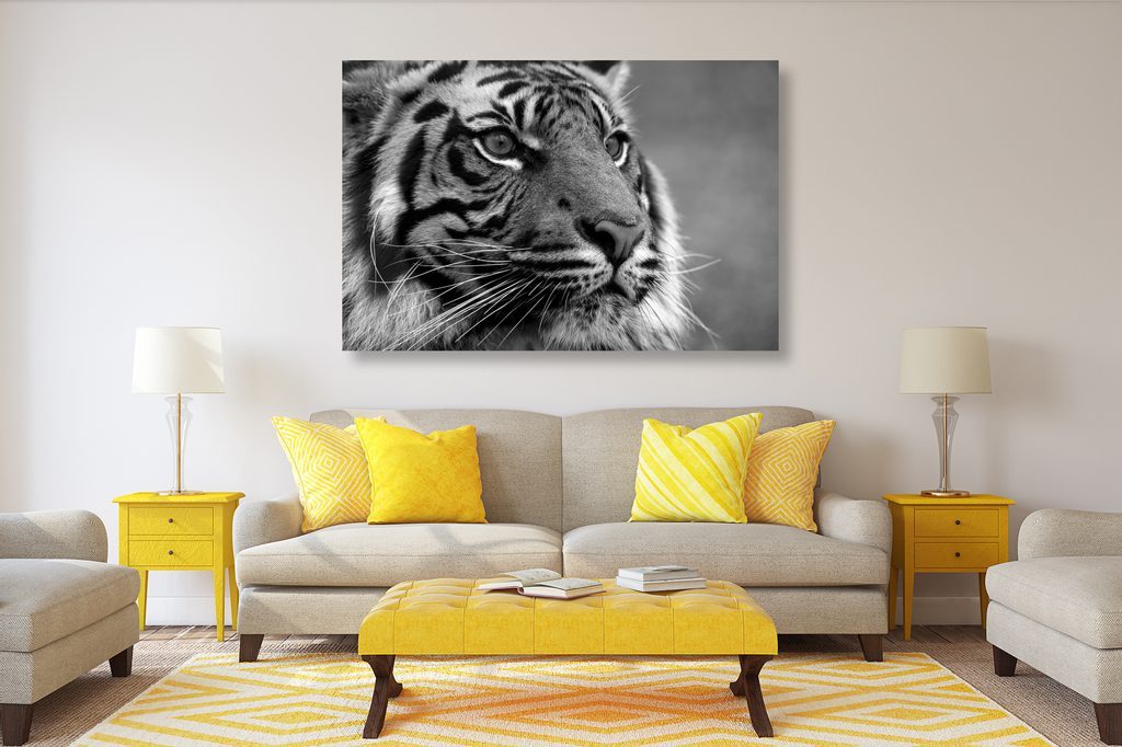 Obraz majestátní tygr v černobílém provedení