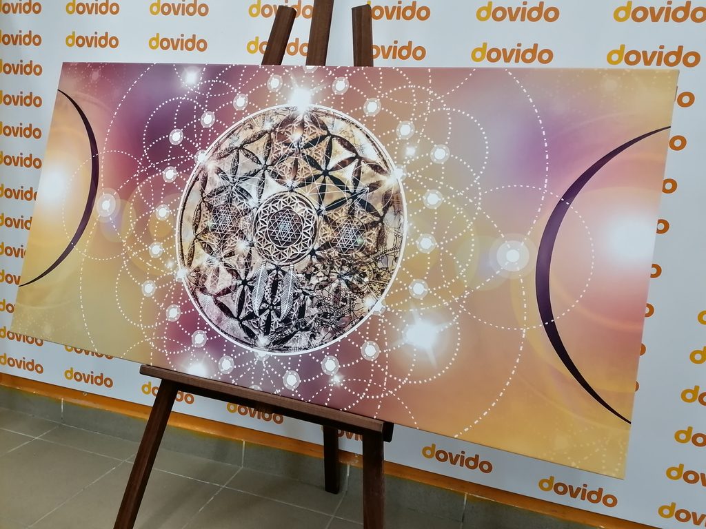 5-dílný obraz symboly slunce a měsíce v černobílém provedení