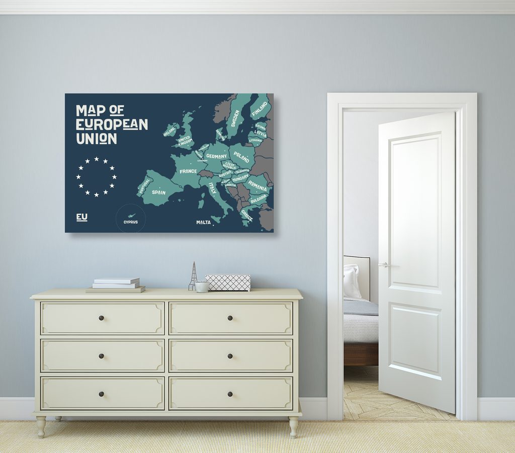 Obraz na korku mapa s názvy zemí na bílém podkladě