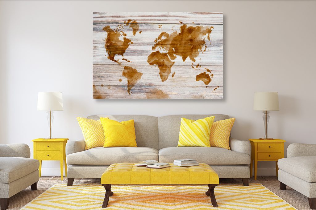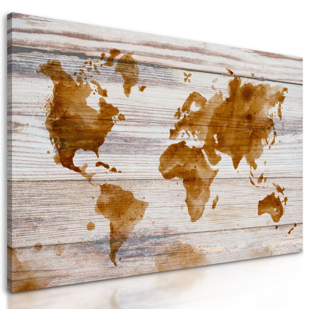 5-dílný obraz geografická mapa světa s bílým pozadím