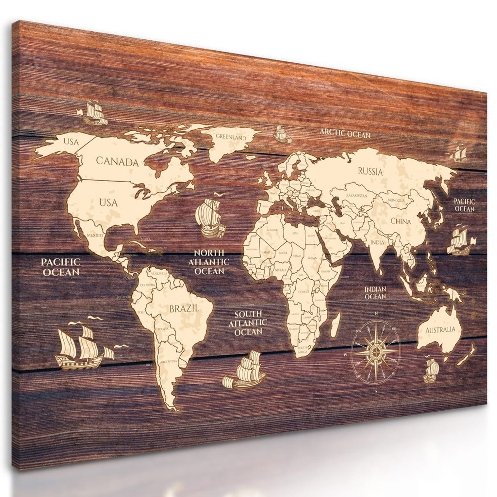Obraz mapa světa na dřevěném podkladu
