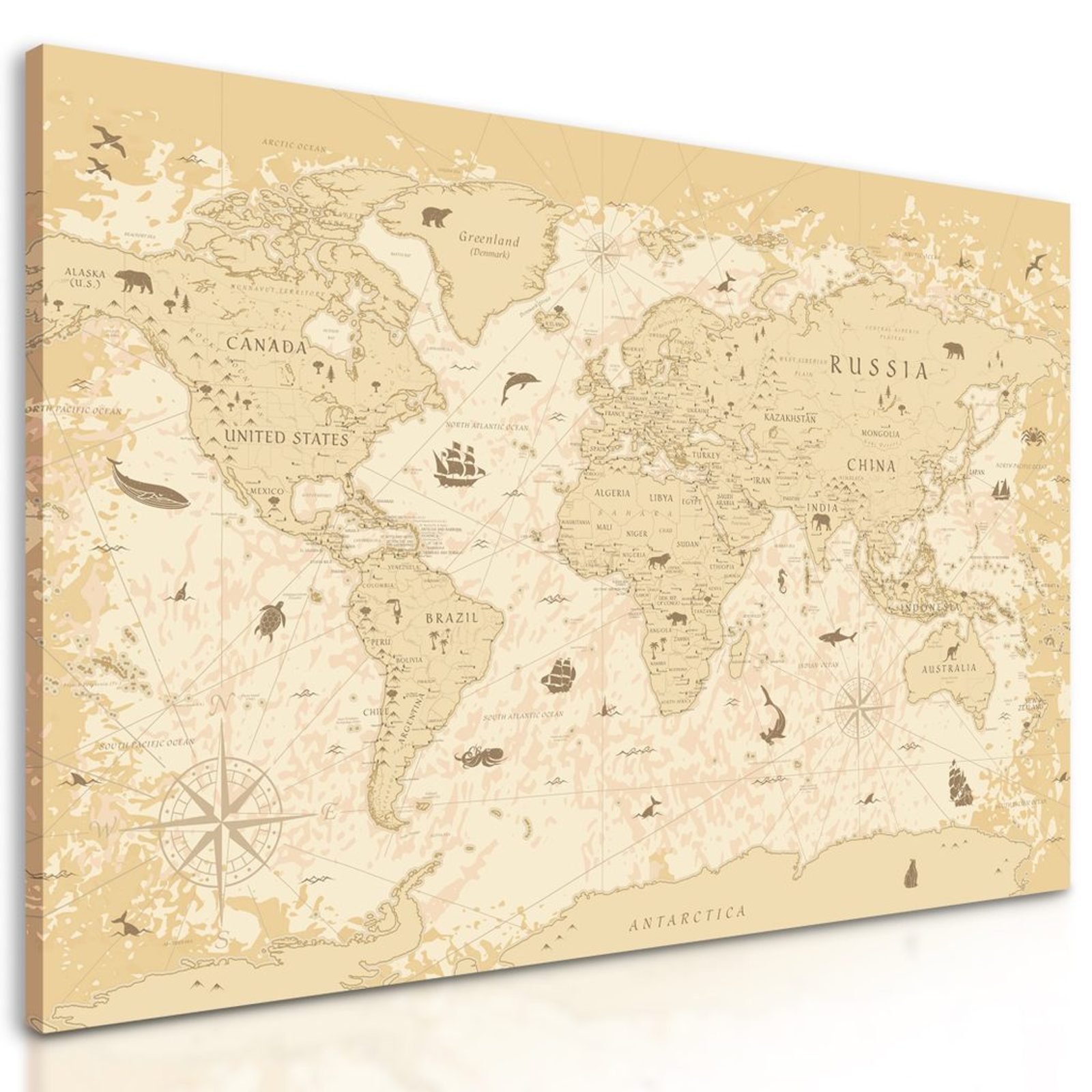 Obraz mapa světa s hudebním motivem v černobílém provedení