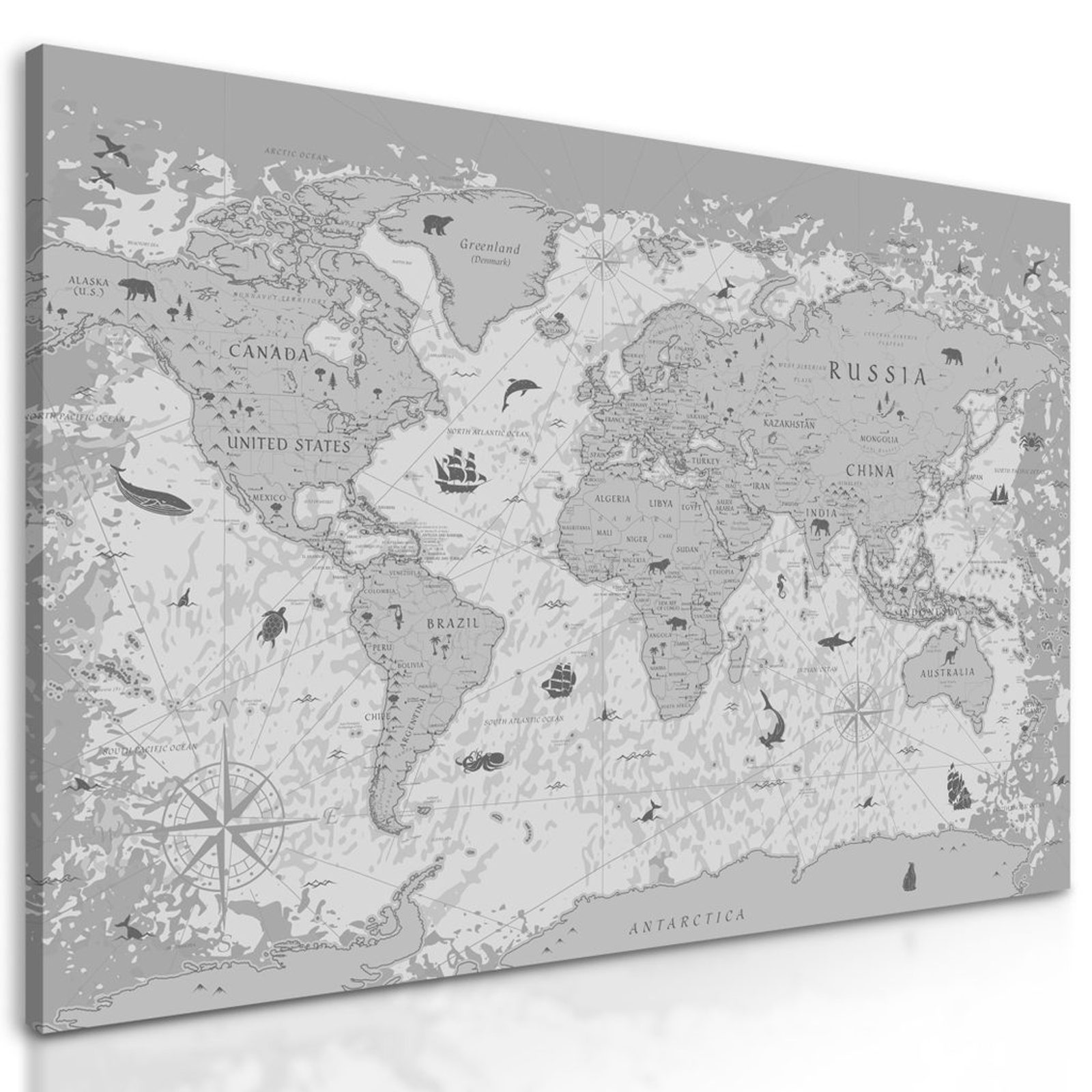 Obraz mapa světa s historickým nádechem v černobílém provedení