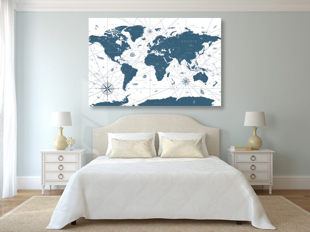 Obraz mapa světa s historickým nádechem v modrém provedení