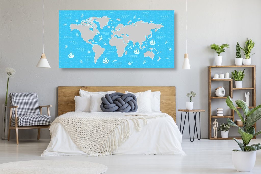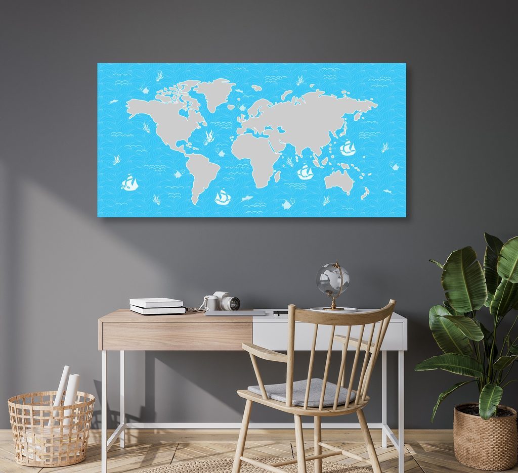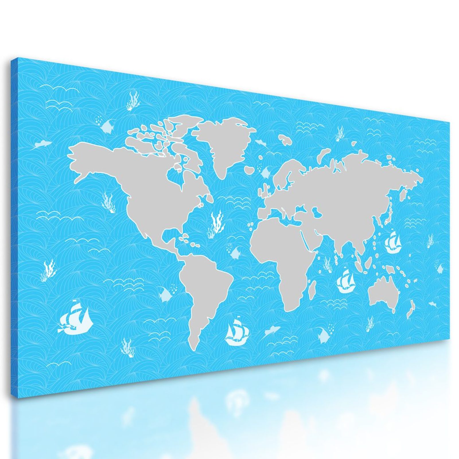 Obraz na korku mapa světa s historickým nádechem v modrém provedení
