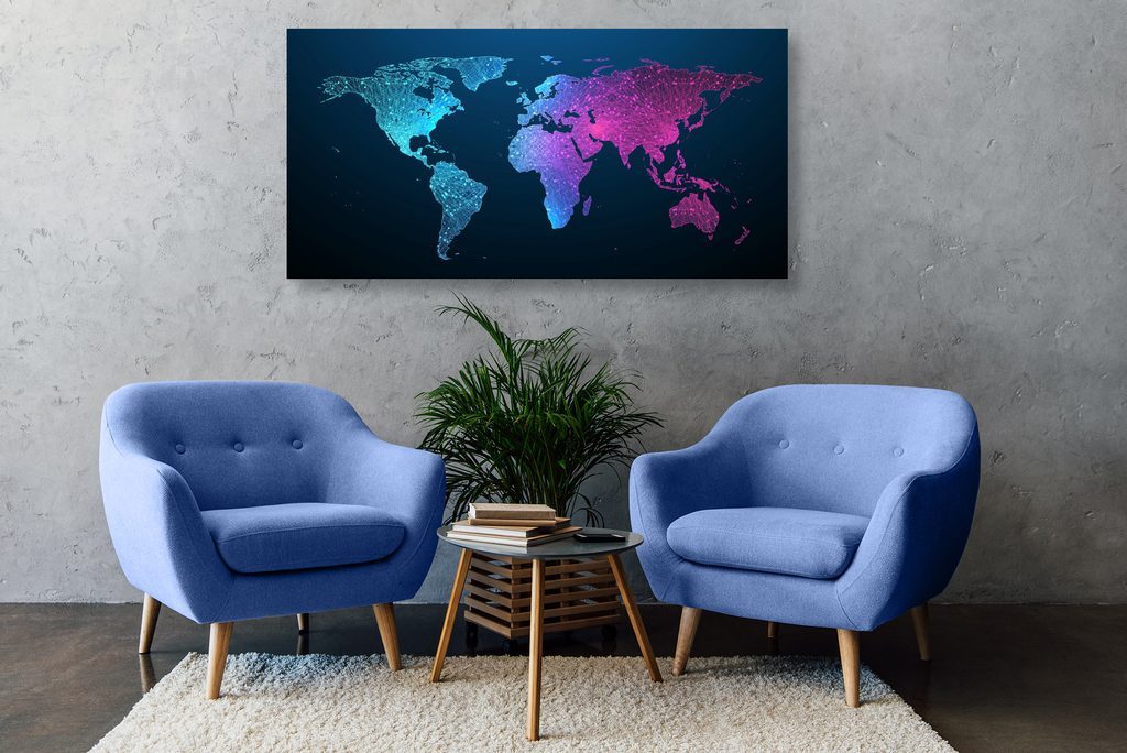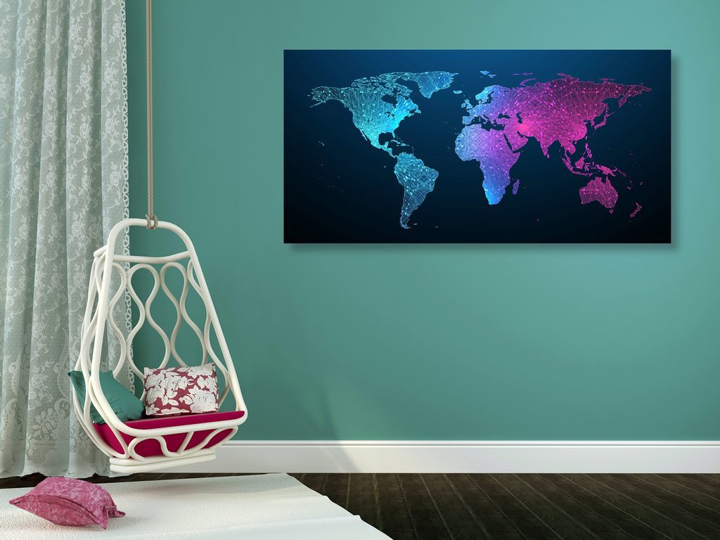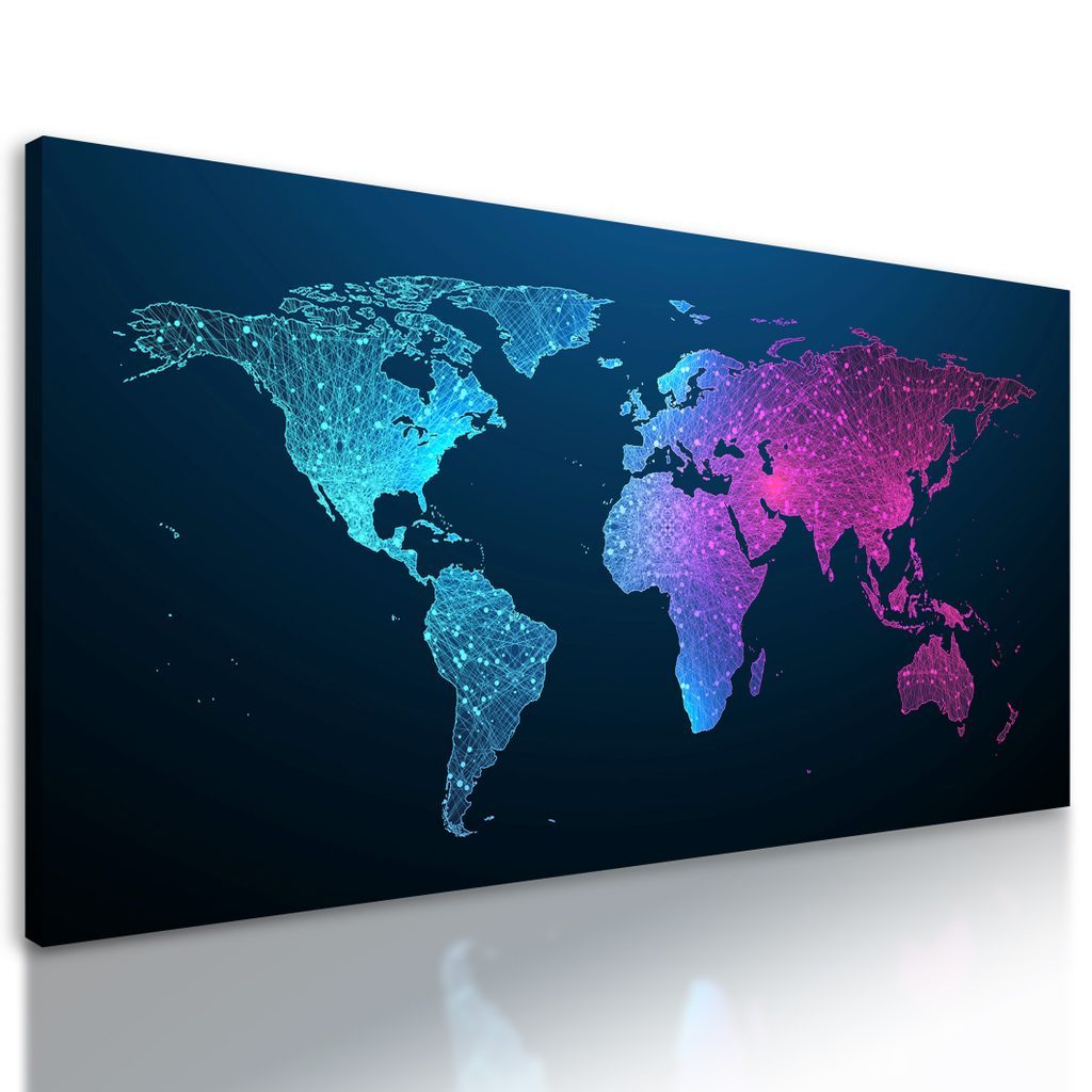 Obraz mapa světa s nádherným neonovým detailem