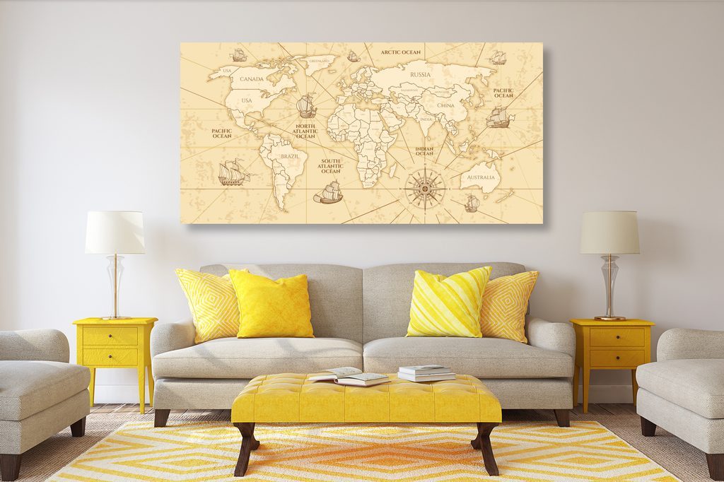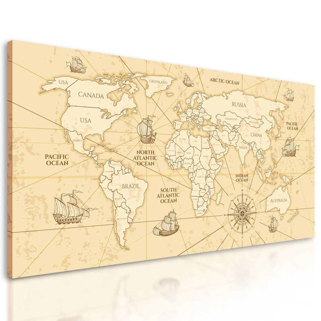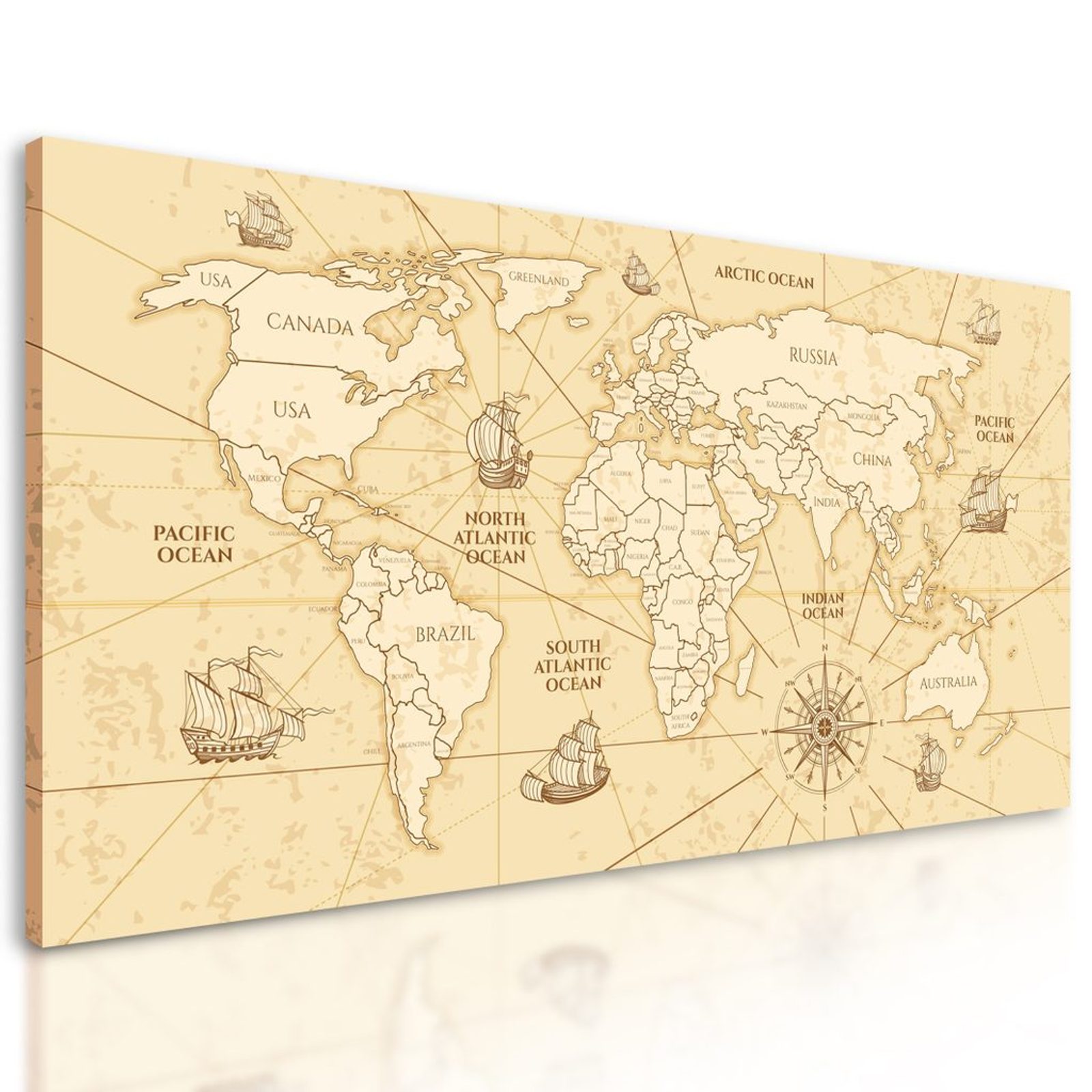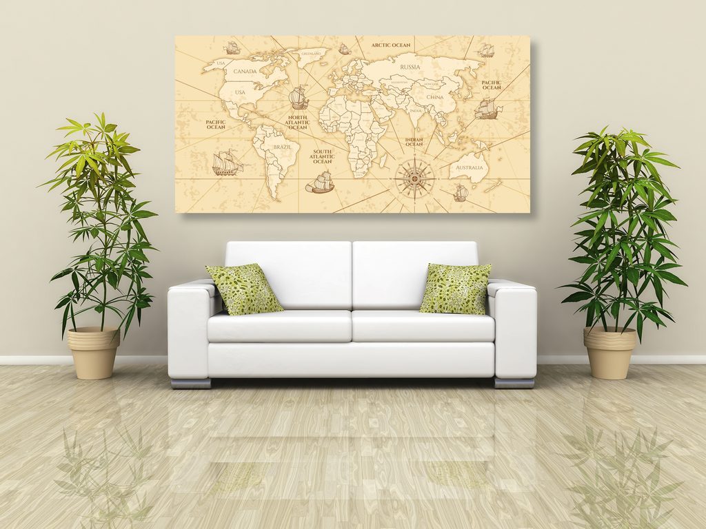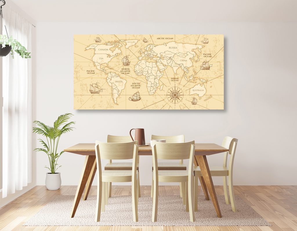 Obraz na korku mapa světa s nádherným černobílým detailem